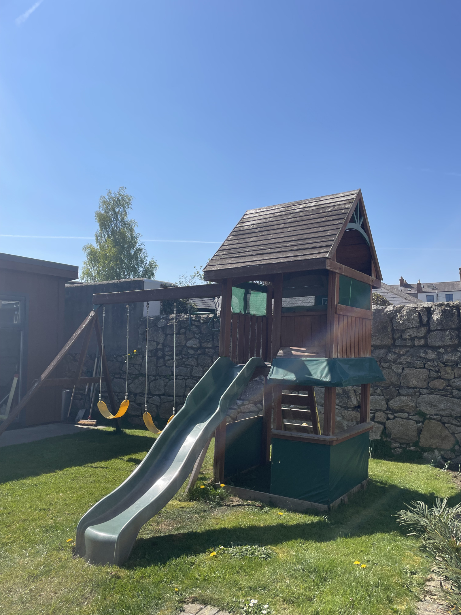 - Garten mit schöner Terrasse zum Entspannen, Grill und Trampolin sowie Schaukel für Kinder.