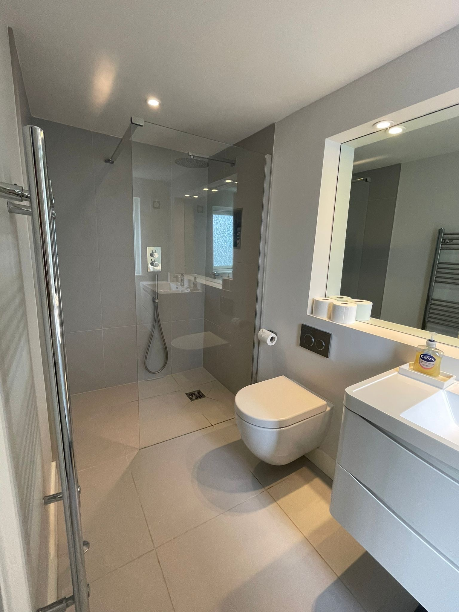 - Hauptschlafzimmer mit Super-King-Size-Bett und eigenem Bad