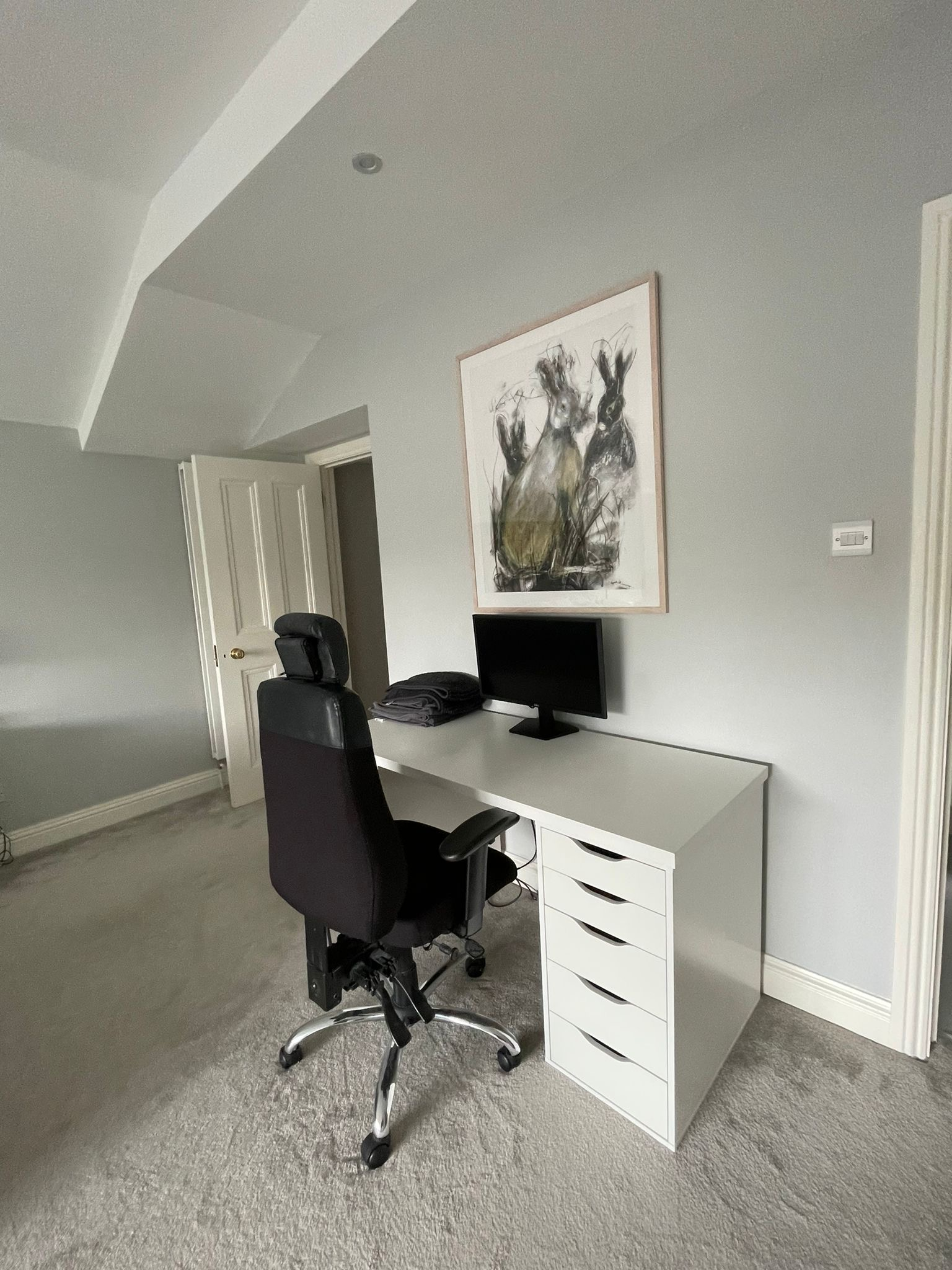 Wir haben ein Homeoffice, das wir während unserer Abwesenheit abschließen.