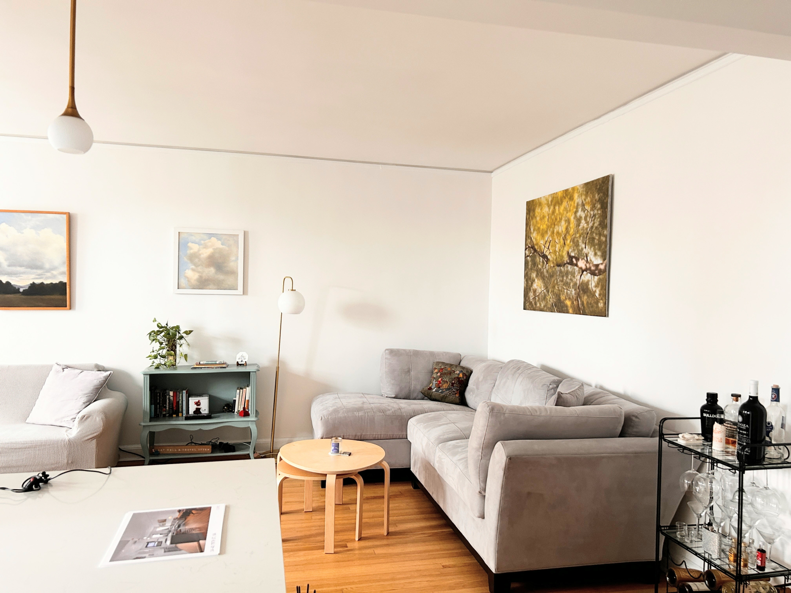 Unsere Wohnung befindet sich im obersten (6. Stock) eines Gebäudes mit Aufzug und hat Fenster nach Norden und Westen. Sie ist hell, geräumig und luftig und ein großartiger Ort, um nach einem anstrengenden Tag nach Hause zu kommen.