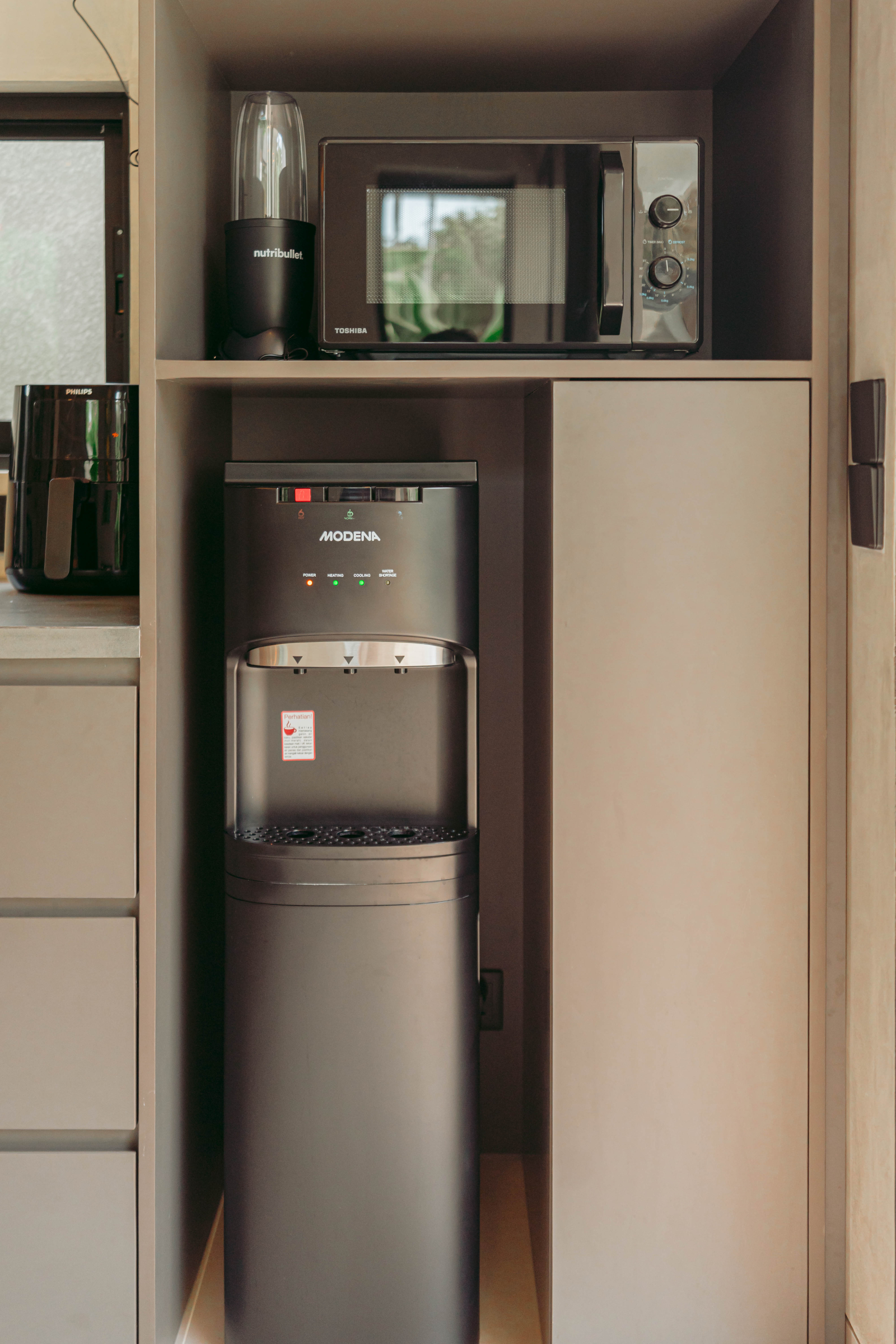 Die voll ausgestattete Küche im westlichen Stil mit Samsung-Kühlschrank mit Gefrierfach, 3-Flammen-Herd, Mikrowelle, Heißluftfritteuse, Nutri-Bullet Pro und Reiskocher bietet Ihnen die Möglichkeit, Ihre eigenen Mahlzeiten zuzubereiten.