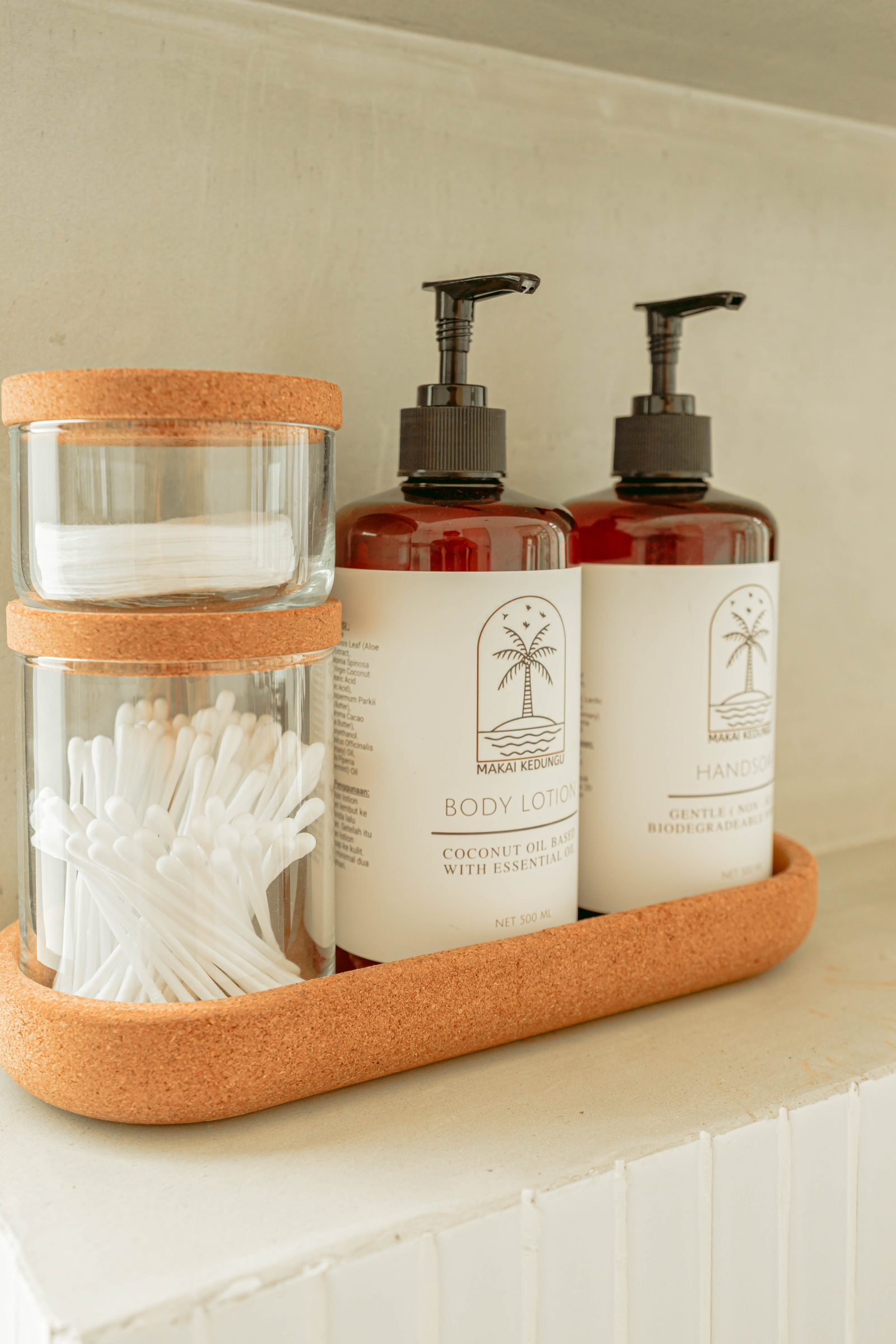 Hier finden Sie Makai Shampoo, Conditioner, Duschgel, Körperlotion und Handseife für Ihre Bequemlichkeit.