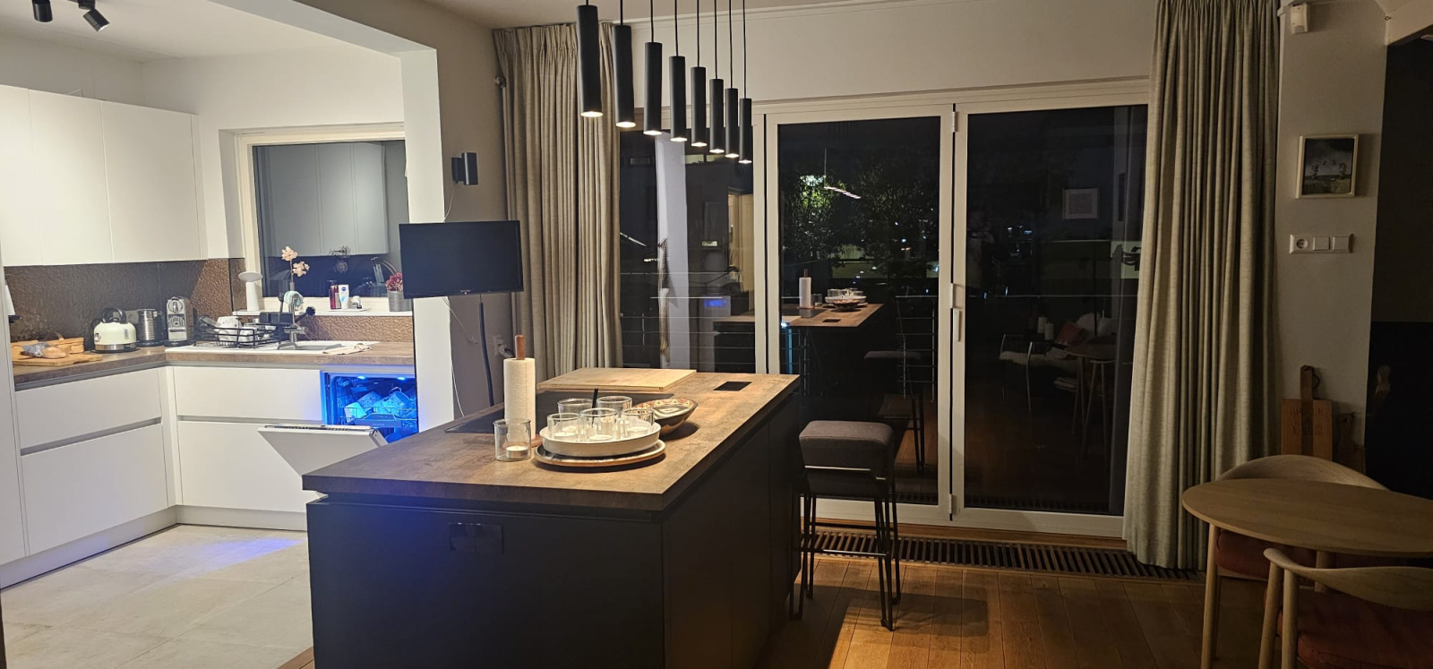 Ihr Haus befindet sich auf der obersten Ebene – ein wunderschönes Wohnzimmer mit offener Küche, ausgestattet mit hervorragenden Geräten und einem fantastischen Herd, perfekt für alle, die gerne kochen. Der Garten ist gut vorbereitet für Grillpartys und das Essen im Freien, was wir sehr geschätzt haben.