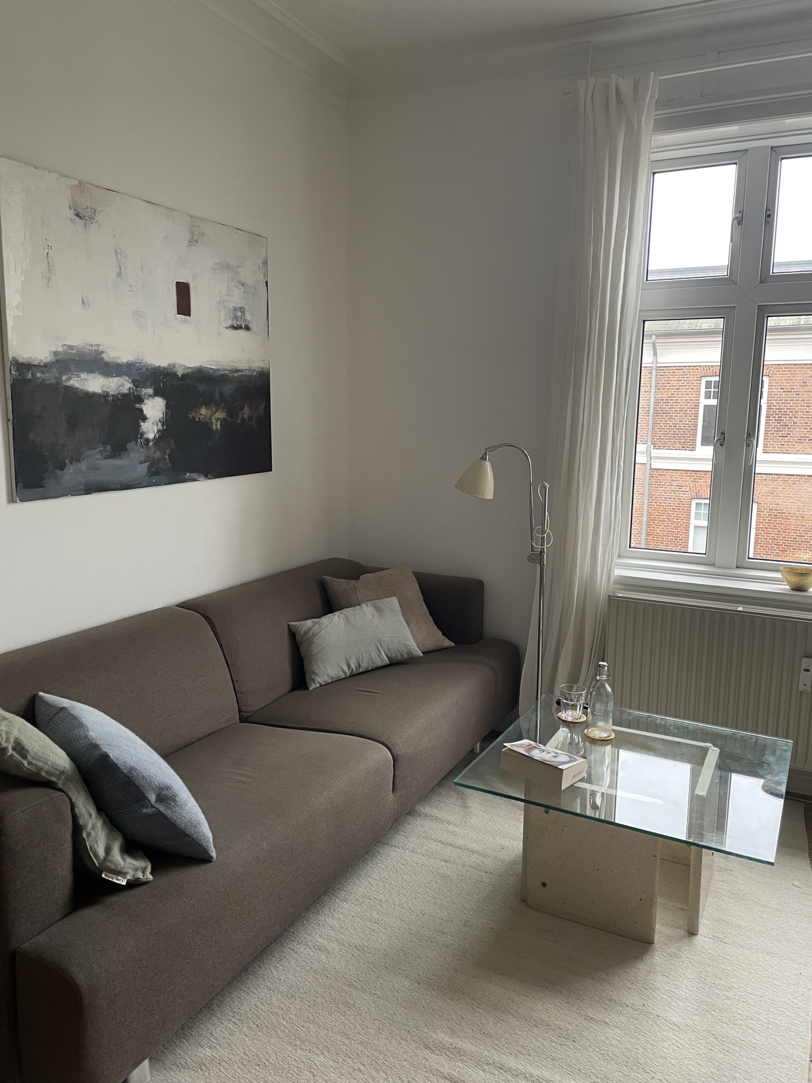 Die Wohnung ist eine klassische alte Kopenhagener Wohnung mit viel Charme. Es gibt 1 Schlafzimmer mit einem Queensize-Bett und einer zusätzlichen Matratze, falls erforderlich. Neben dem Schlafzimmer gibt es ein Wohnzimmer mit einem Esstisch, einem Sofa und einem Fernseher. Die Küche ist komfortabel und verfügt über alles, was Sie brauchen, wenn Sie eine hausgemachte Mahlzeit wünschen. Das Badezimmer ist klein (ein typisches Kopenhagener Badezimmer), verfügt aber über die notwendigen Geräte: WC, Waschbecken und Dusche.