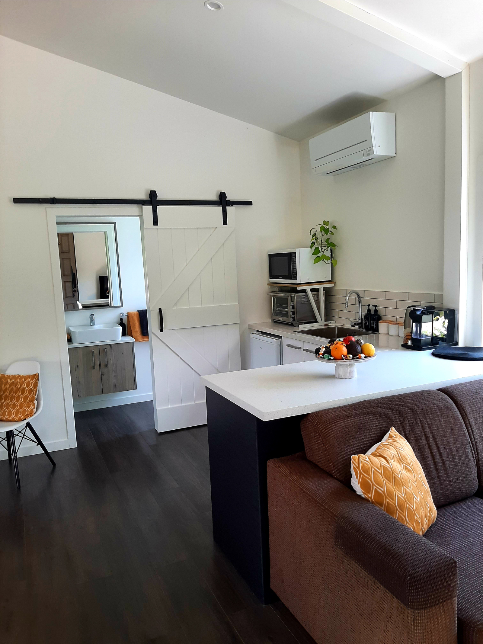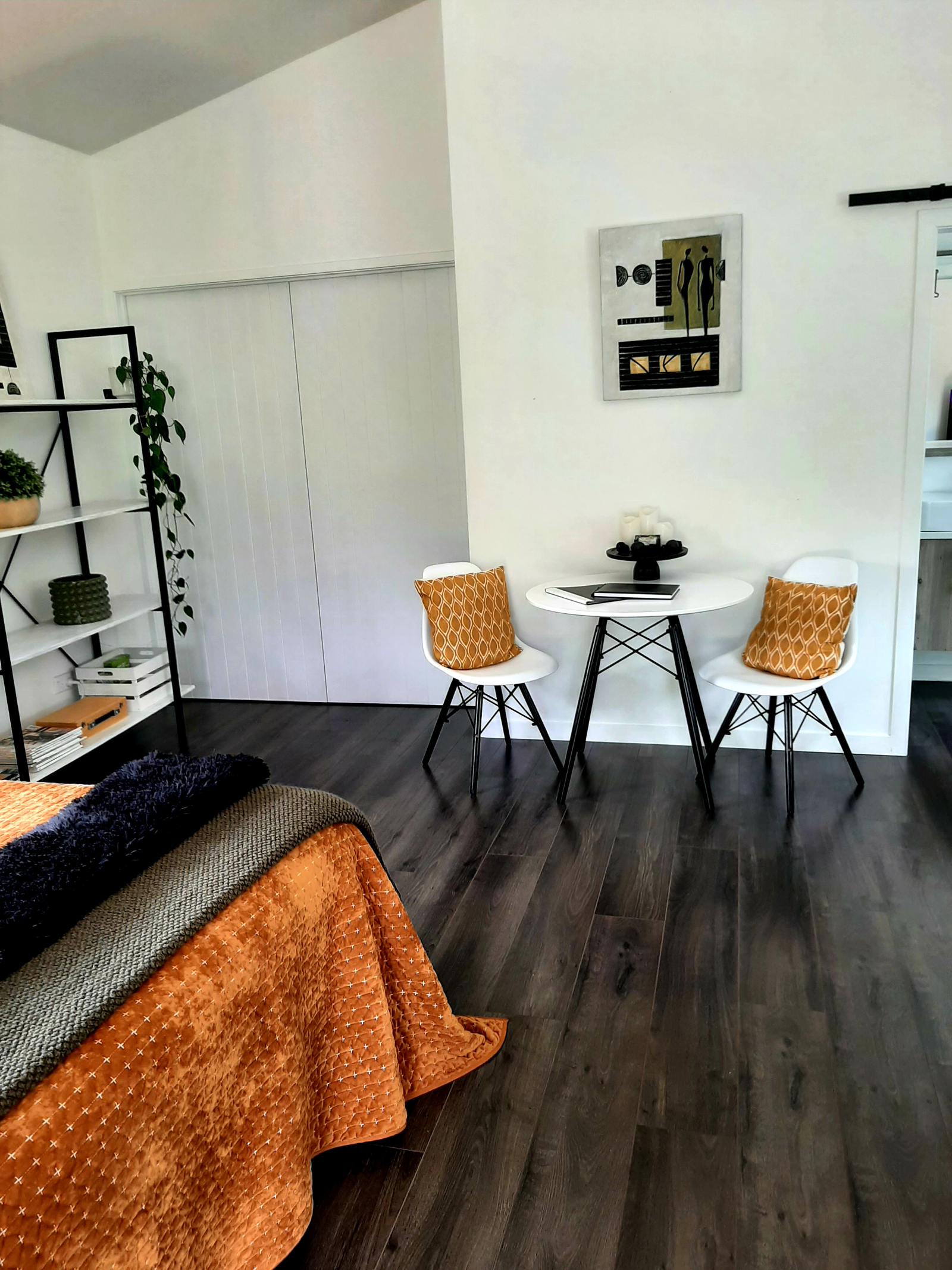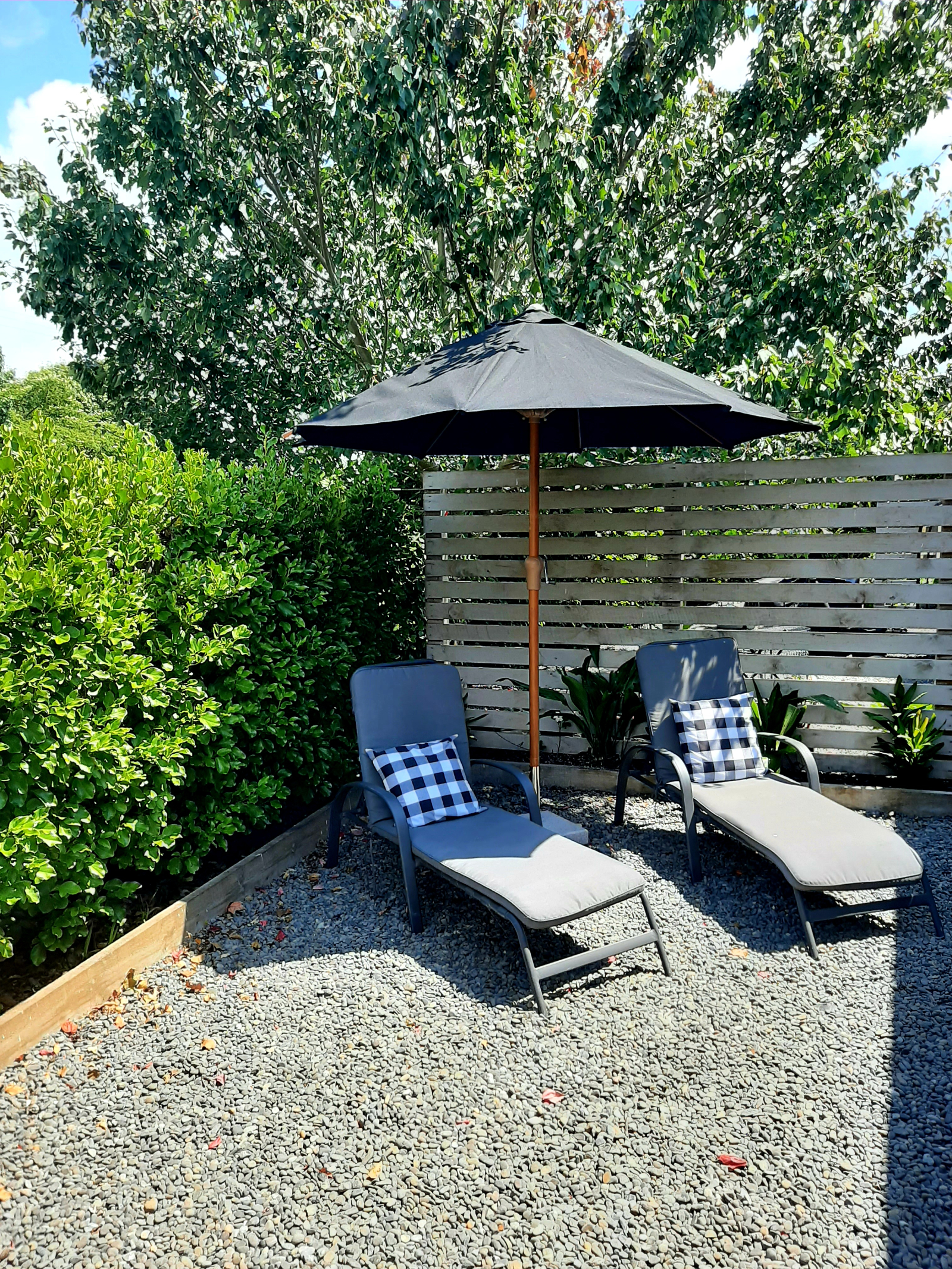 Privates, modernes, freistehendes, 42 m² großes Studio mit 1 Schlafzimmer, 1 Badezimmer und Küchenzeile. 2 private Sitzbereiche im Freien, Grillhof und Gartenanlage. Kingsize-Bett, Smart-TV mit Prime Video. Klimatisiert mit Nespresso-Maschine, hochwertiger Bettwäsche und vielen anderen Extras. Sichere Parkplätze neben dem Studio.