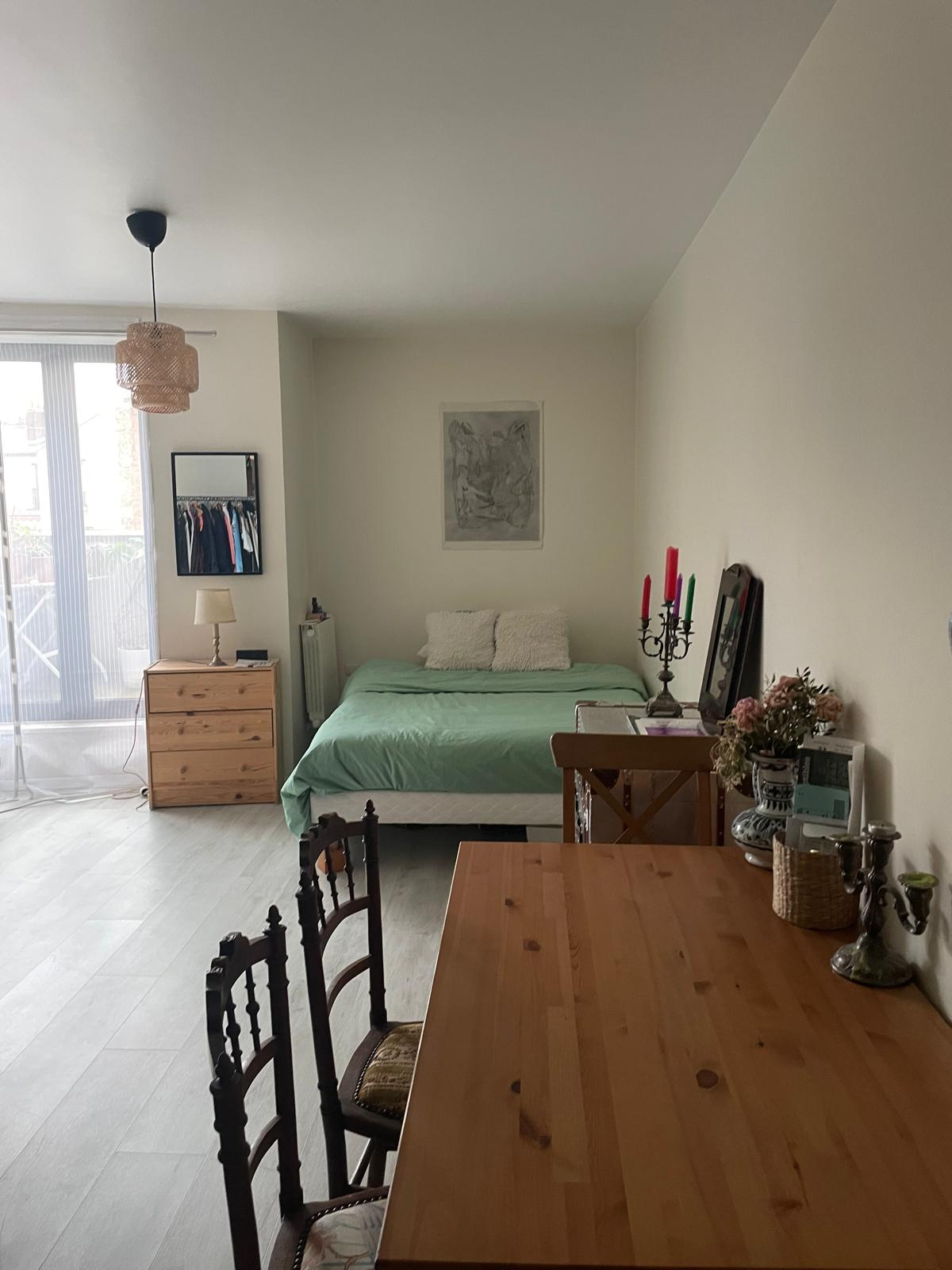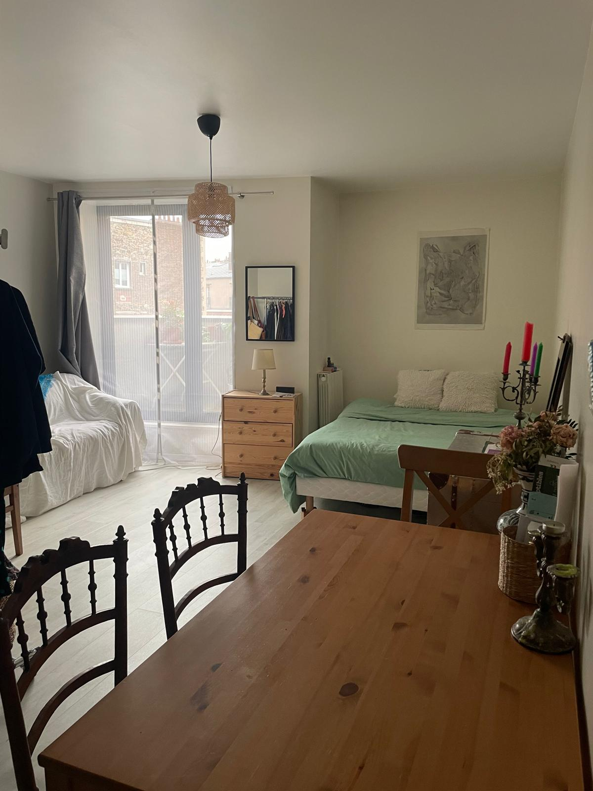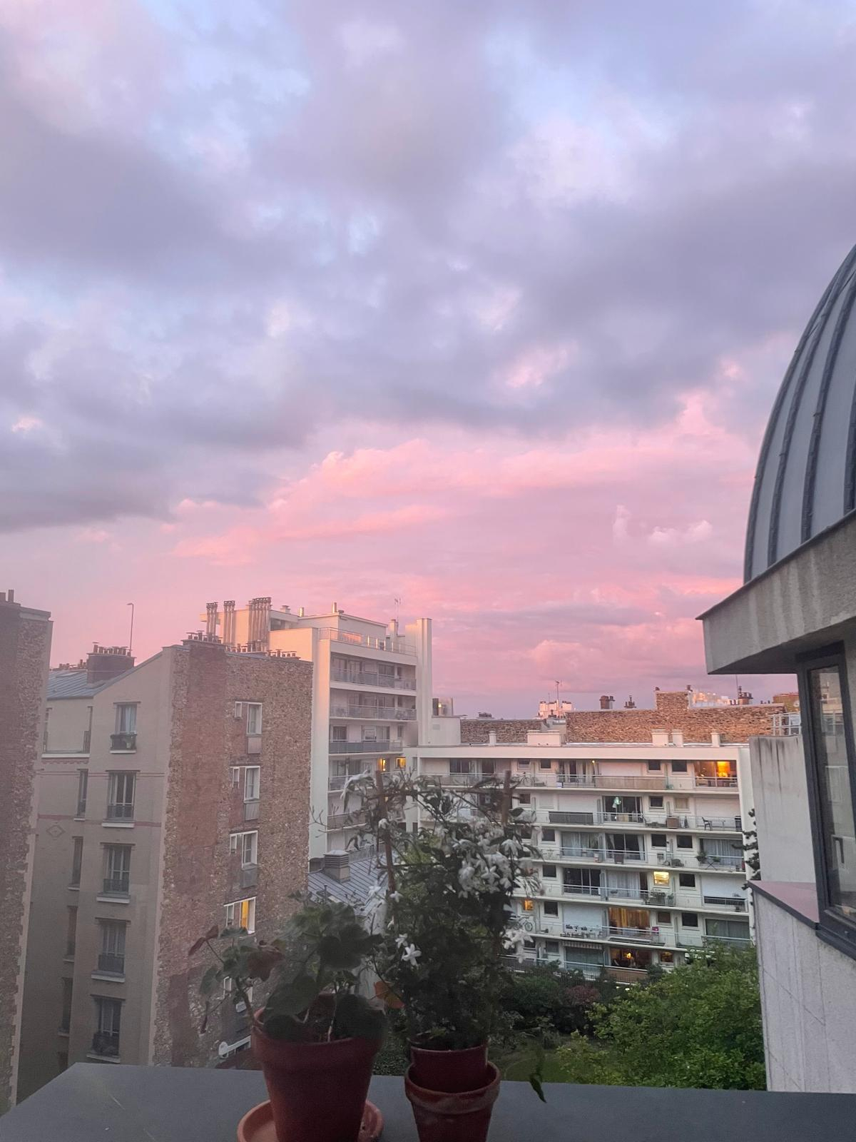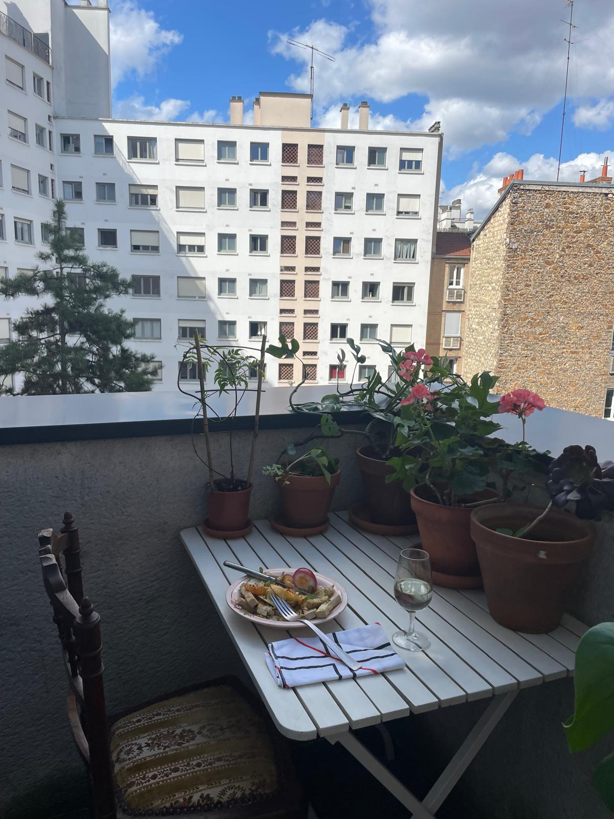 Eine malerische und ruhige 34 Quadratmeter große Wohnung direkt neben dem Buttes Chaumont Park. Viertes Mehl mit Aufzug, Terrasse, Badewanne und Wächter.
