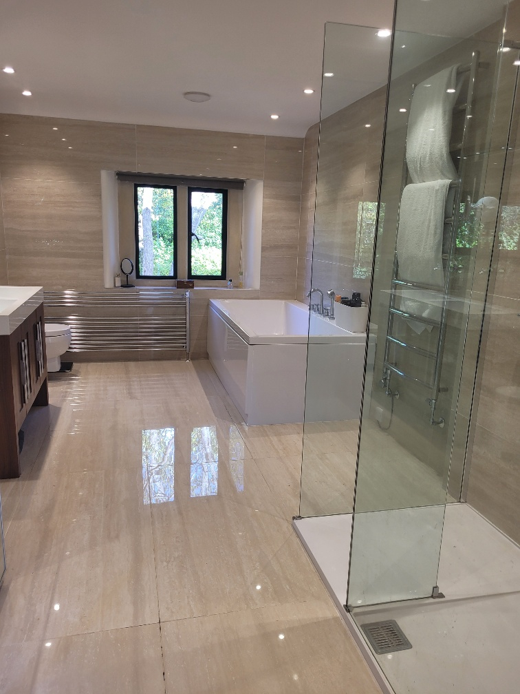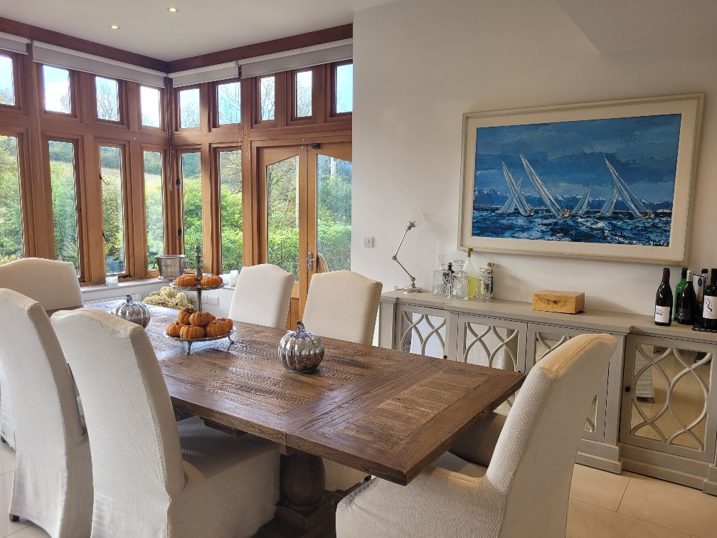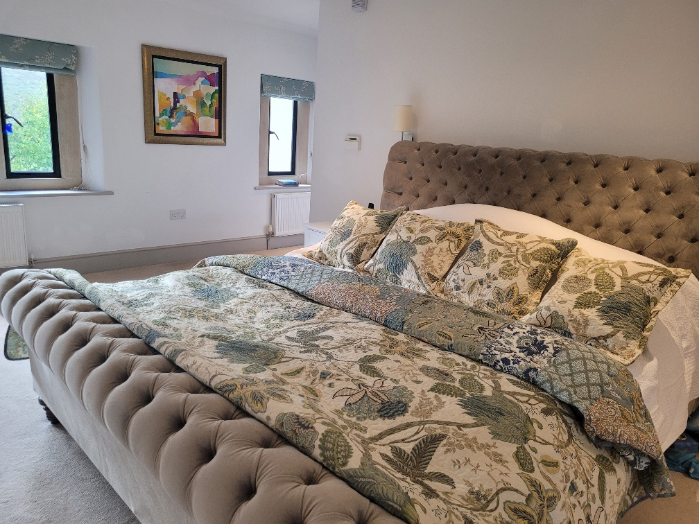 Geschmackvolle Einrichtung, große Schlafzimmer mit vier SuperKingsize-Betten und zwei Einzelbetten. 4 große Badezimmer ( 3 mit Badewanne und Dusche) und ein Pulver-/Halbbadezimmer. Geschlossenes Anwesen.