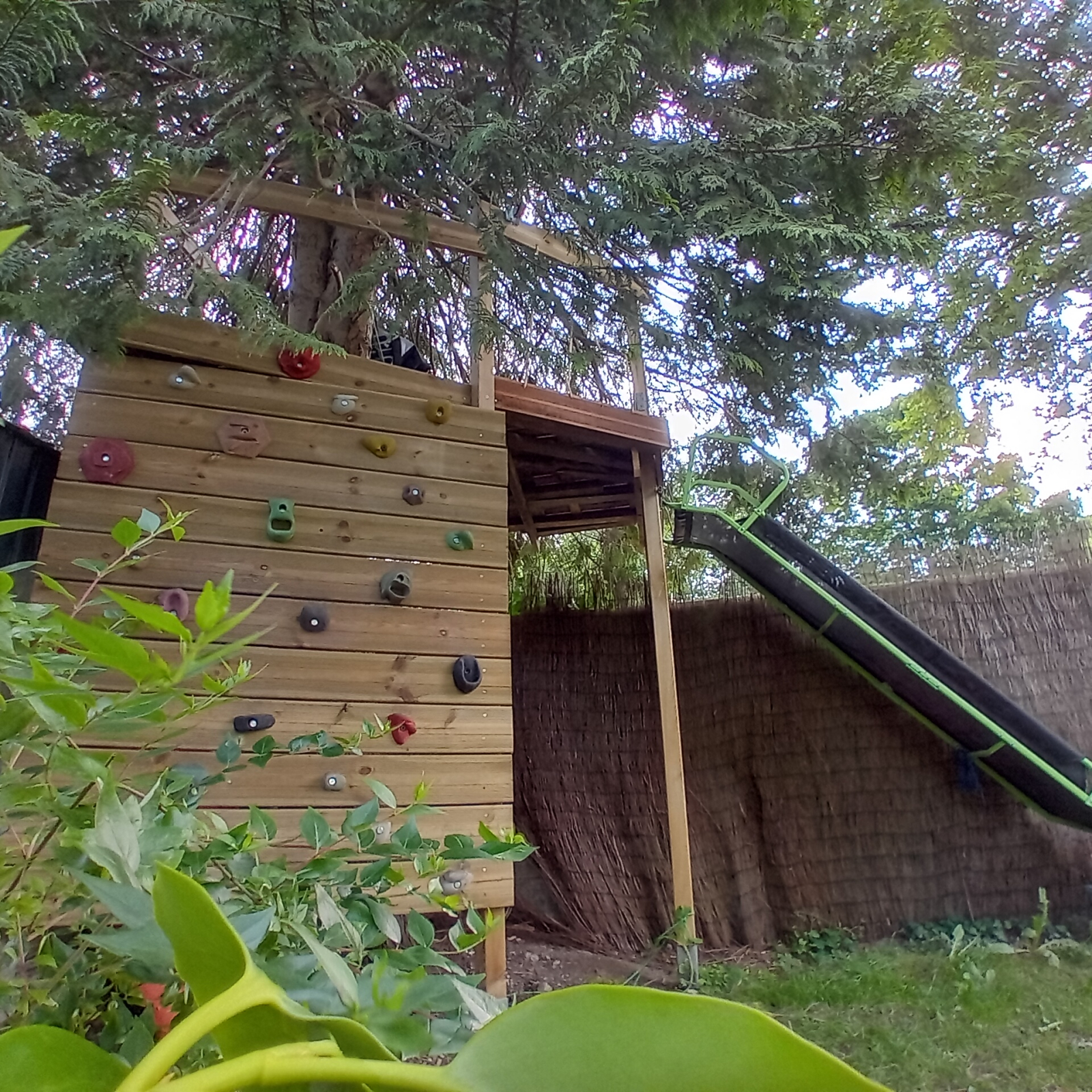 Der Garten ist groß genug für die Kinder zum Spielen und es gibt auch ein Baumhaus.