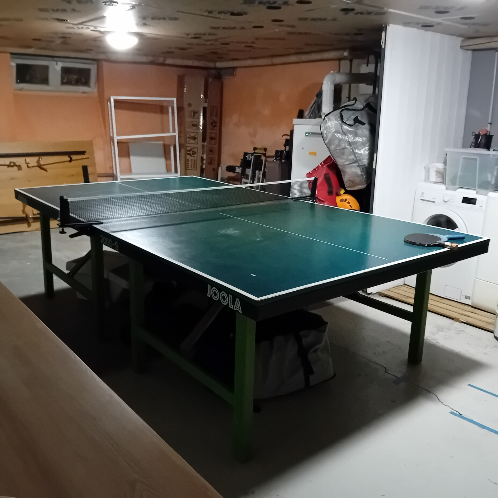 Zwei Stockwerke und ein Erdgeschoss für Fahrräder und andere Sachen. (Tischtennisplatte)