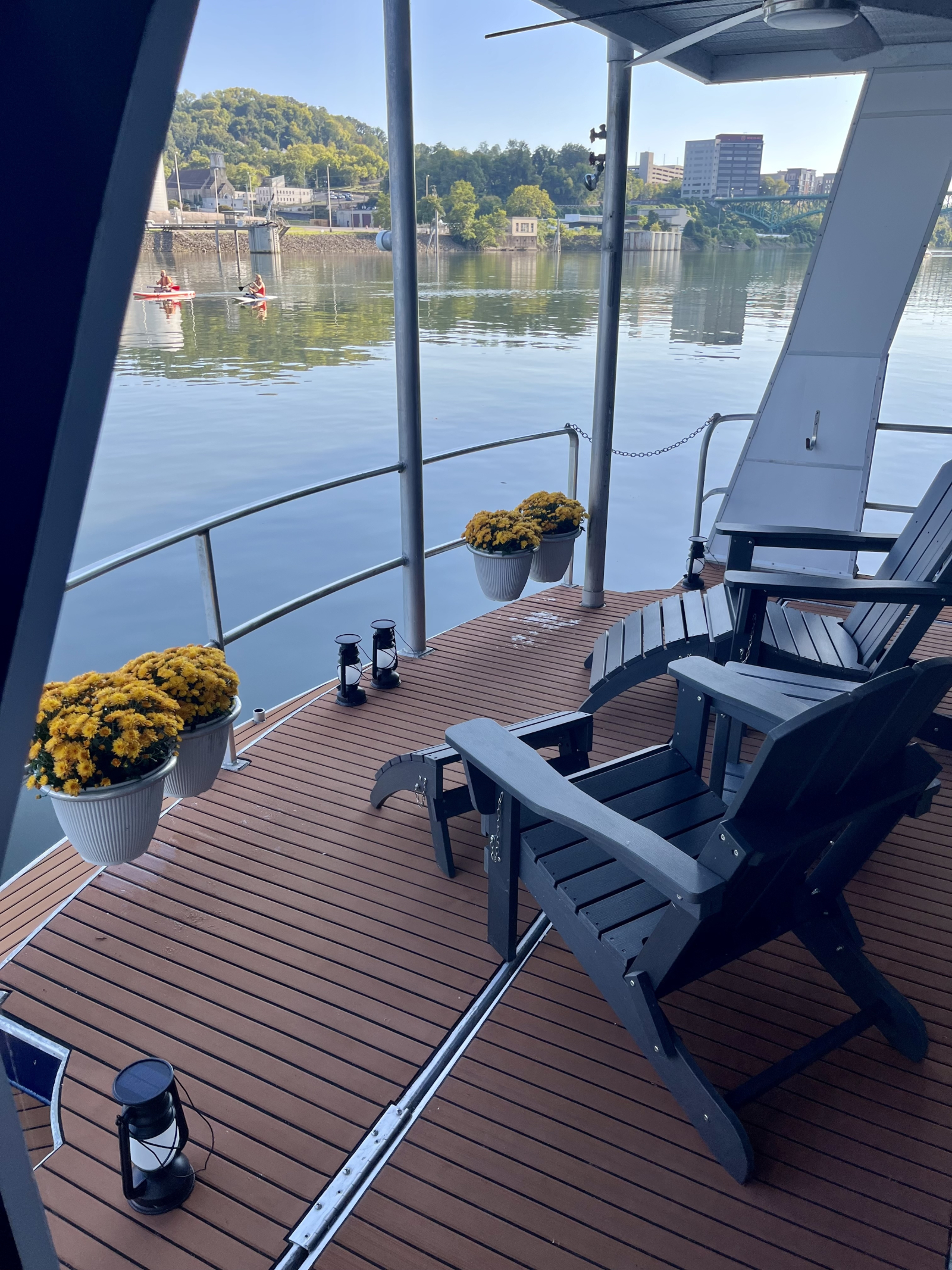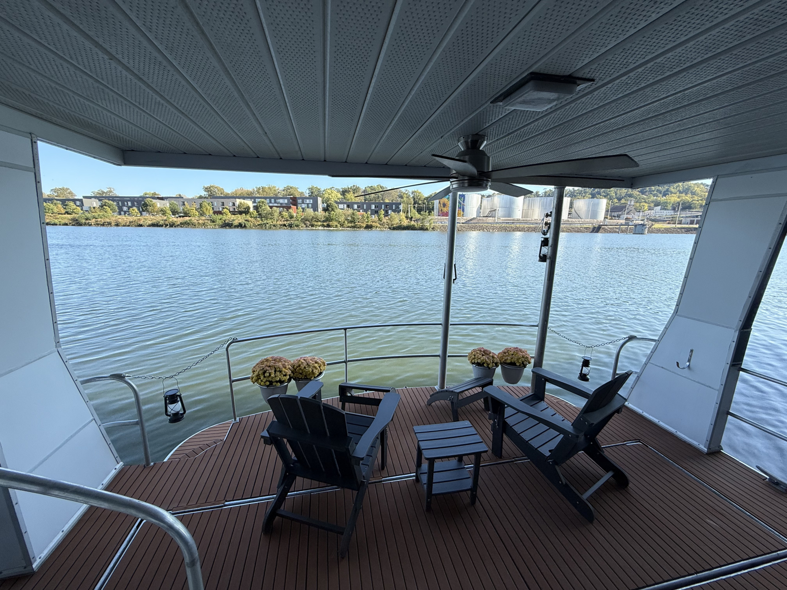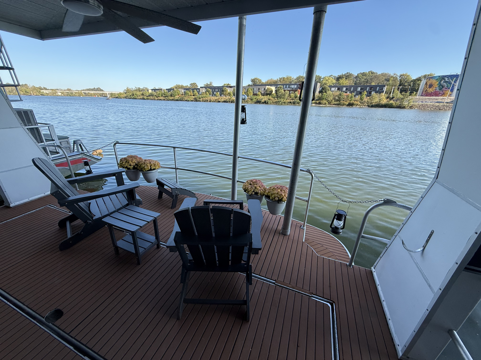 Vor Anker am malerischen Tennessee River im Herzen der Innenstadt von Knoxville bietet dieses wunderschöne Hausboot einen einzigartigen Aufenthalt, der Komfort, Abenteuer und eine unschlagbare Lage verbindet.