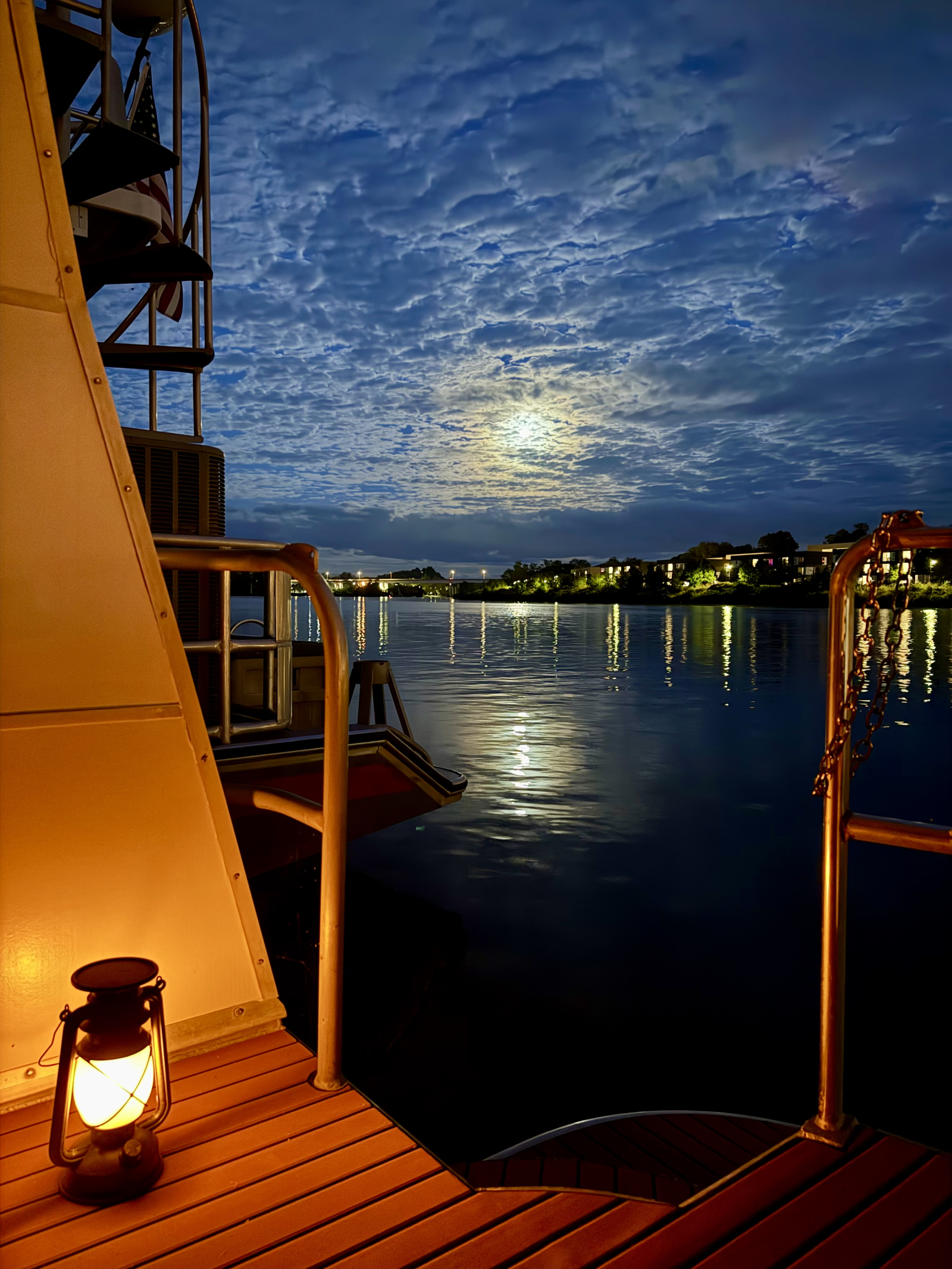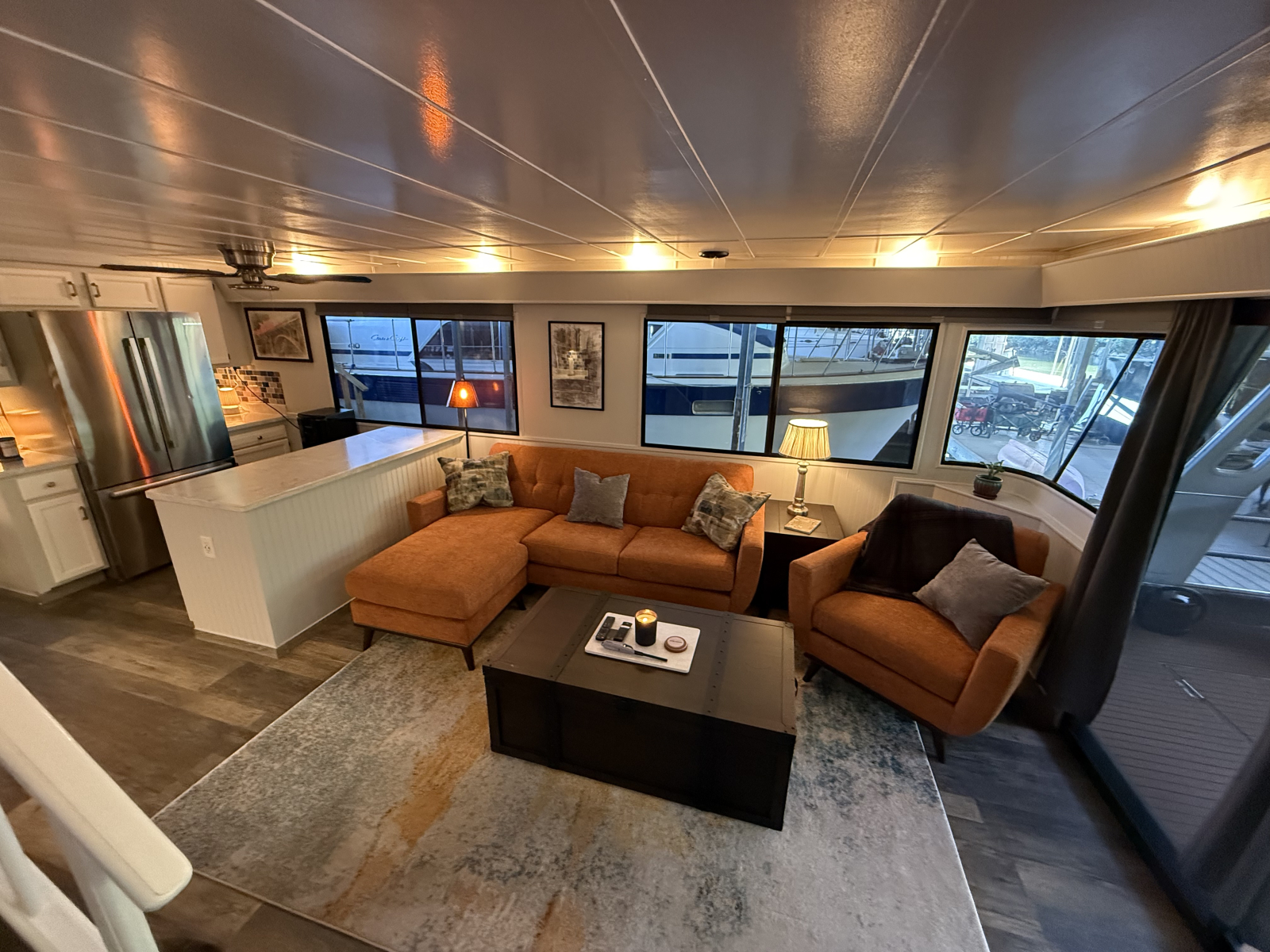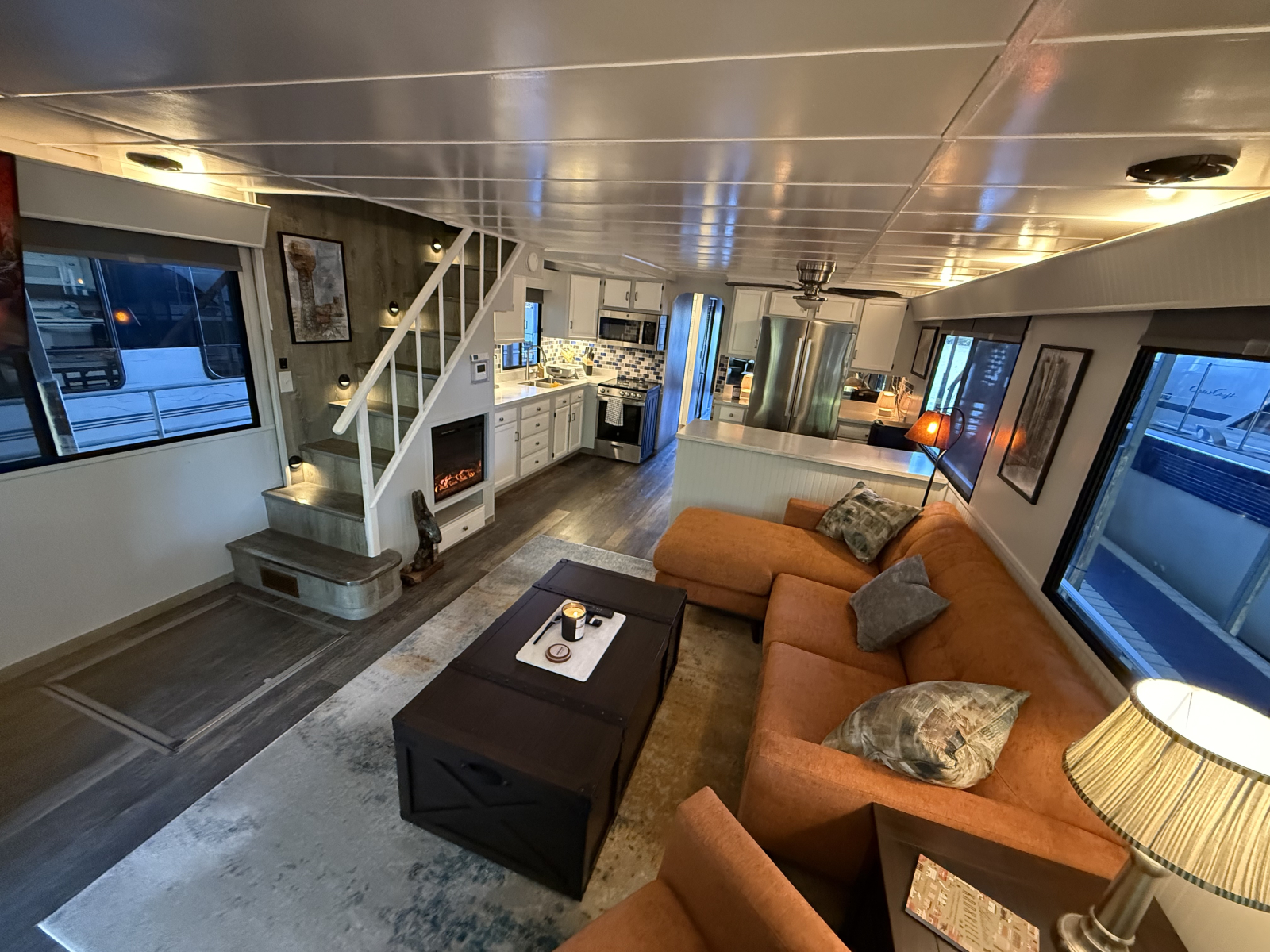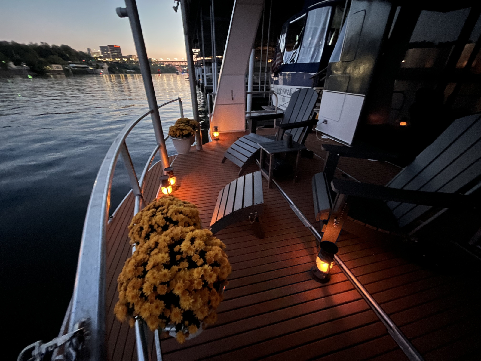 Vor Anker am malerischen Tennessee River im Herzen der Innenstadt von Knoxville bietet dieses wunderschöne Hausboot einen einzigartigen Aufenthalt, der Komfort, Abenteuer und eine unschlagbare Lage verbindet.