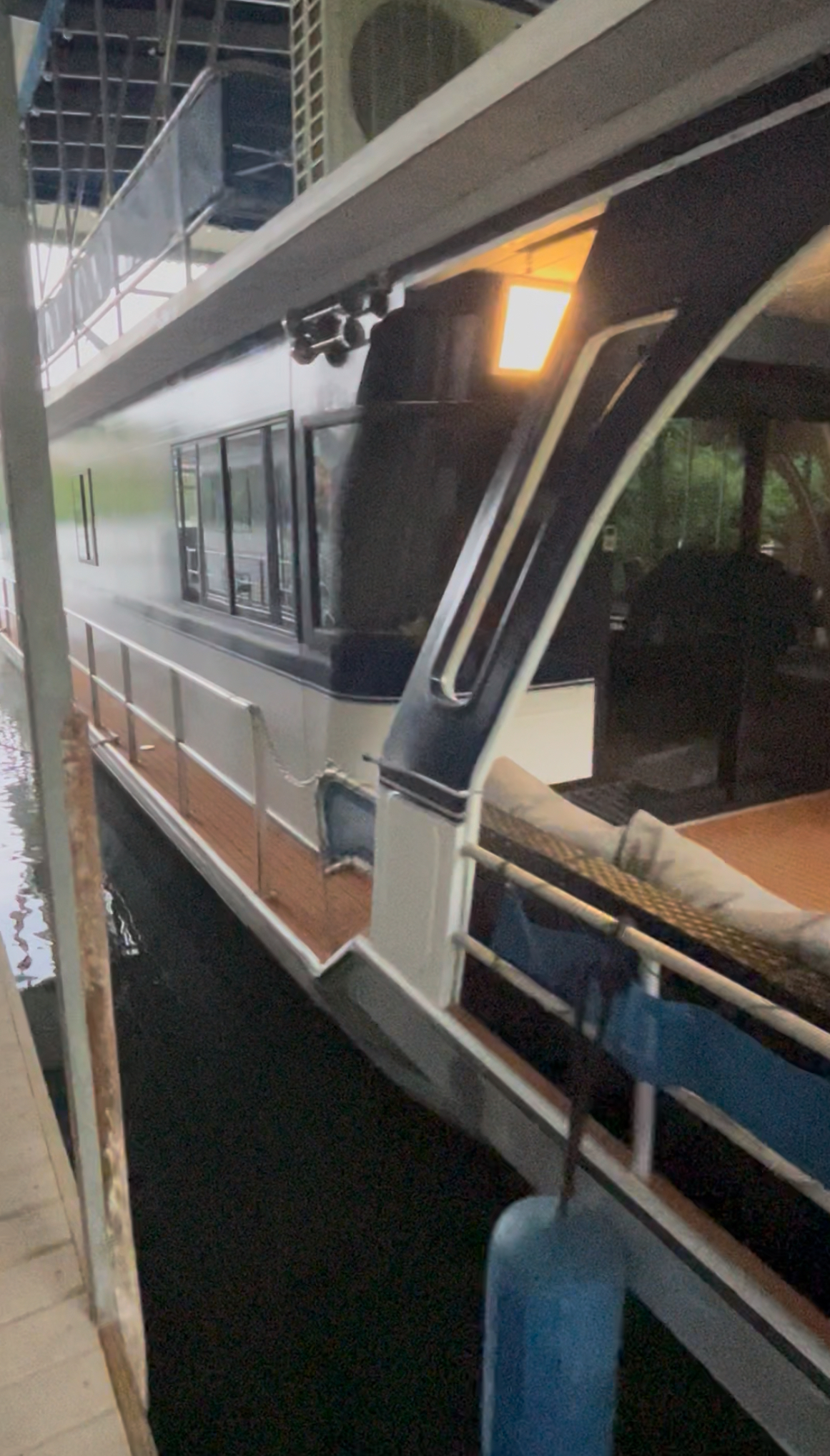 Das Boot ist für bis zu acht Gäste ausgelegt, verfügt über eine moderne Kochküche und ein weitläufiges 69-Fuß-Deck, das perfekt zum Essen, Entspannen oder einfach zum Genießen der natürlichen Schönheit des Flusses geeignet ist.