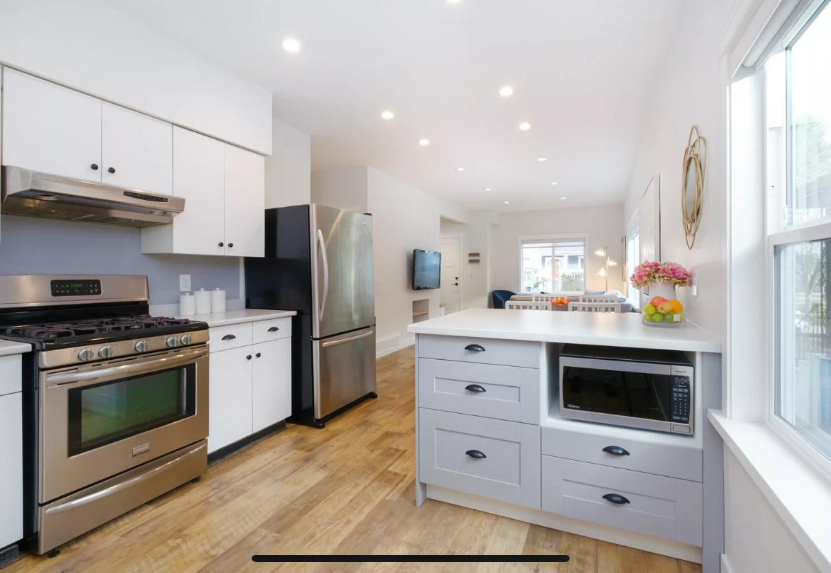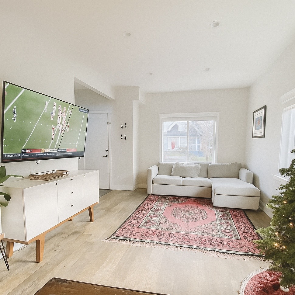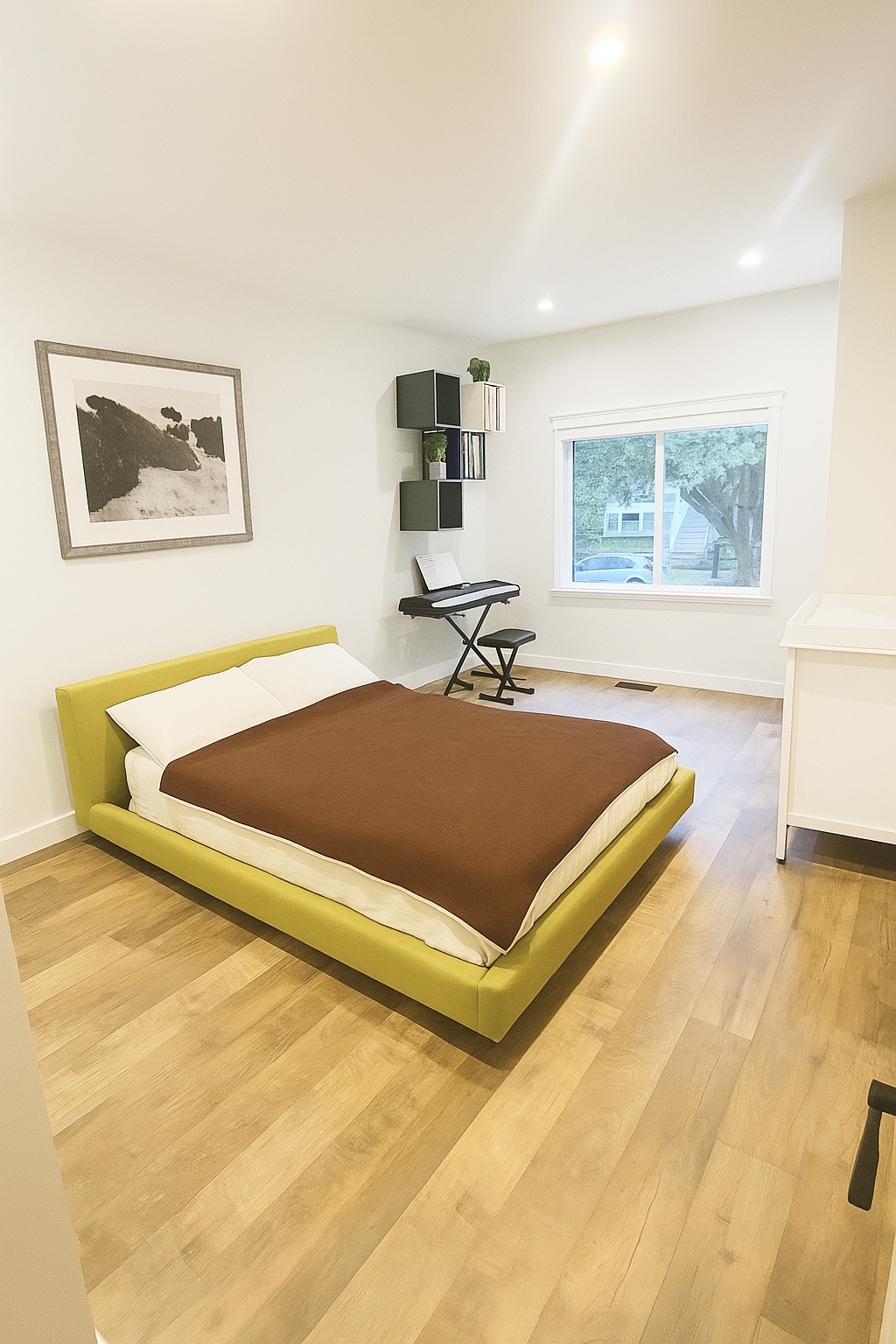 2-stöckiges Haus. Die 1. Etage verfügt über ein großes Wohnzimmer, eine tolle Küche mit allen Geräten, die zum Kochen und Reinigen erforderlich sind, 1 Badezimmer mit Badewanne/Dusche und ein großes Hauptschlafzimmer. Im 2. Stock befinden sich 2 große Schlafzimmer (eines als Kinderzimmer und das andere als Gästezimmer) und ein komplettes Badezimmer mit Dusche. Großer nach Westen ausgerichteter Hinterhof mit übergroßer Sonnenterrasse mit Blick auf Obstbäume, Gemüseboxen und eine Kinderspielstruktur. Brandneue finnische Sauna (2025) in unserem Hinterhof auch für den Zugang der Gäste!