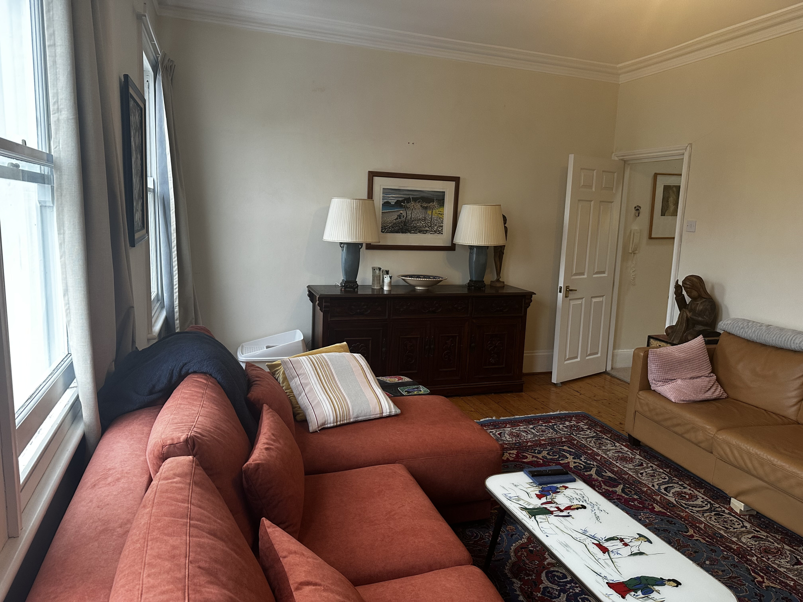 Wohnung im Obergeschoss. 3 große Doppelzimmer. Großes Wohnzimmer. Garten. Viel Licht! Sicherer Bereich. 5 Minuten zu Fuß von der U-Bahn-Station Tooting Broadway (Northern Line Zone 3), Supermärkten und Geschäften entfernt. 35 Minuten vom Schließen der Haustür ins Zentrum von London. 1 Kingsize-Bett und 2 kleinere Doppelbetten. Das Sofa verwandelt sich auch in ein Kingsize-Bett. 1 Badezimmer, 1 en-suite Badezimmer. Voll ausgestattete Küche mit Heißluftfritteuse (wir sind Feinschmecker).