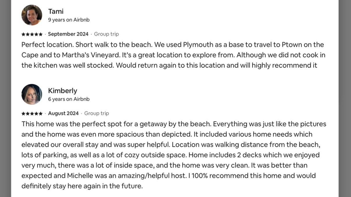Ich habe die Sommer meiner Kindheit am White Horse Beach in Plymouth, Massachusetts, verbracht und jetzt genießen wir es mit unseren erwachsenen Kindern und Enkelkindern, wenn wir wieder im Osten sind. Unsere Immobilien in Plymouth, Massachusetts, werden auch als Kurzzeitvermietungen genutzt und freuen uns nun darauf, sie zu nutzen, damit wir ein wenig reisen und neue Ziele erkunden können. Freuen Sie sich auf die Kontaktaufnahme 🙏