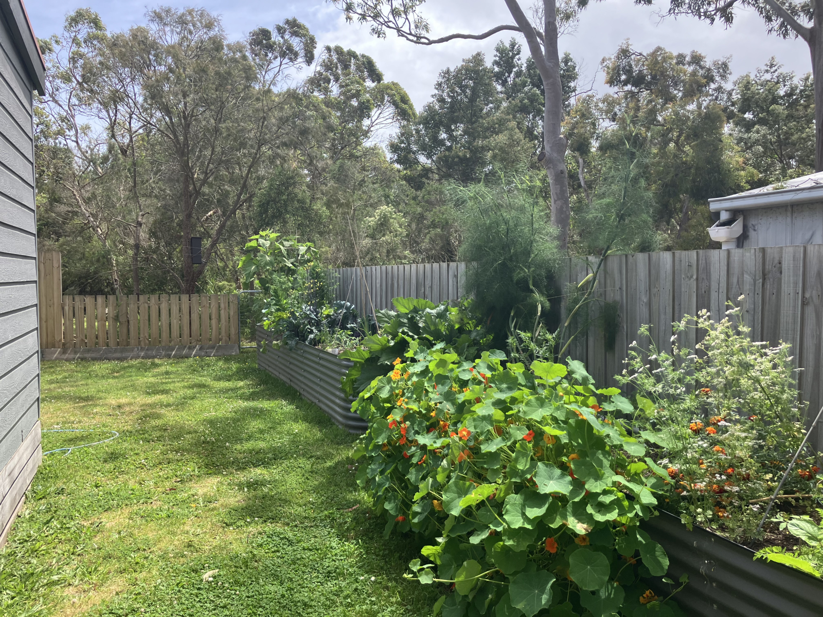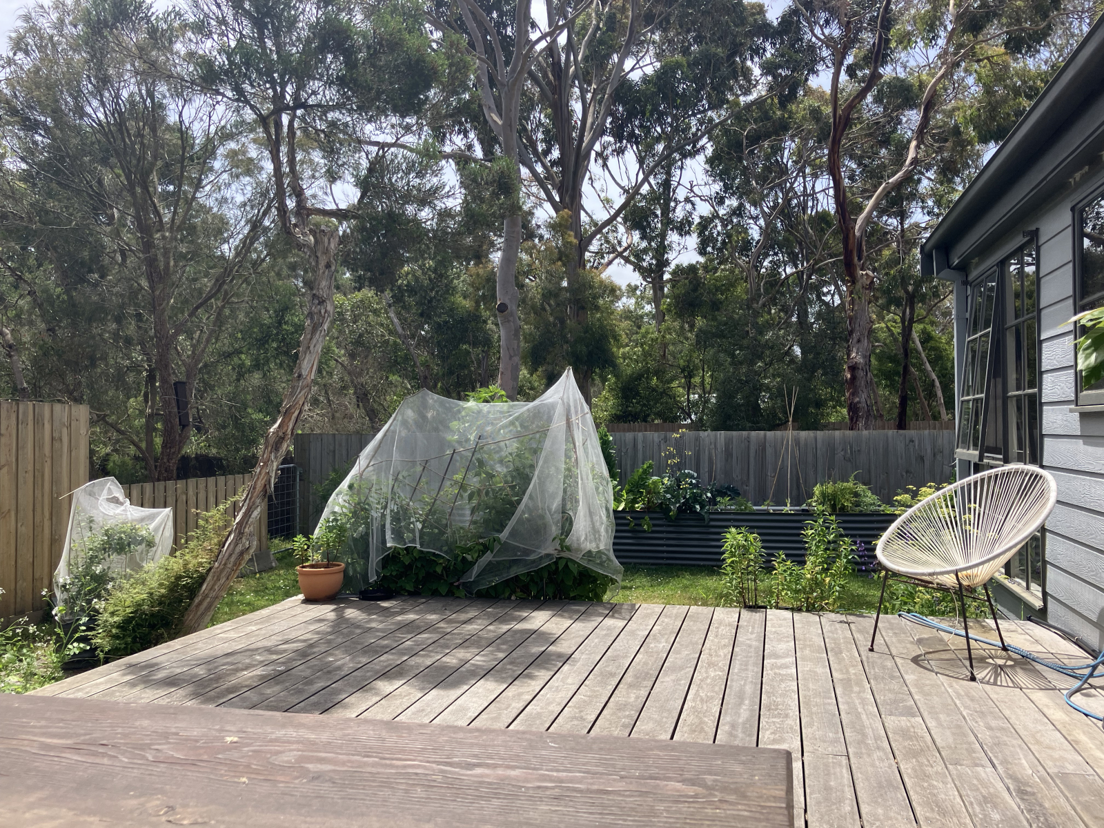 Im hinteren Bereich grenzt unser Garten an das Ratsreservat, das Heimat riesiger Eukalyptusbäume voller Vögel ist, darunter Kookaburras, Honigfresser und Zaunkönige. Unser ansässiges Koala Coco hat sogar schon ein paar Mal den Garten besucht!