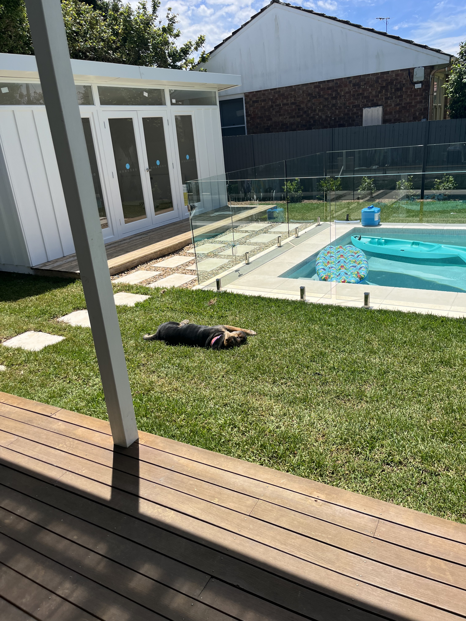 Open plan dining/ kitchen area which opens to north facing backyard and wrap around deck. There is a freestanding studio/ pool cabana in the backyard with a double bed and a bathroom and office space and gym. Safe fully fenced backyard, great for kids and pets.
