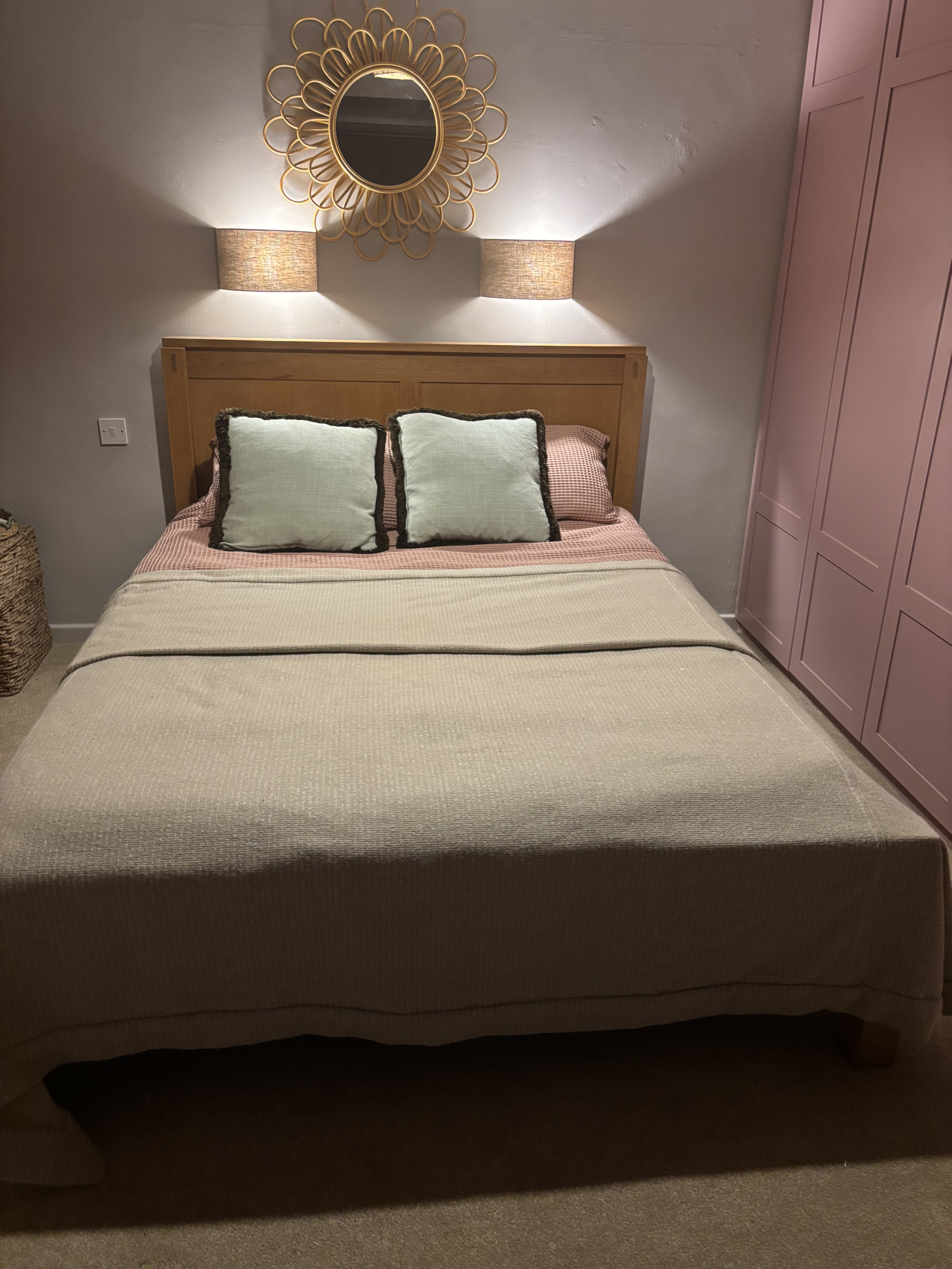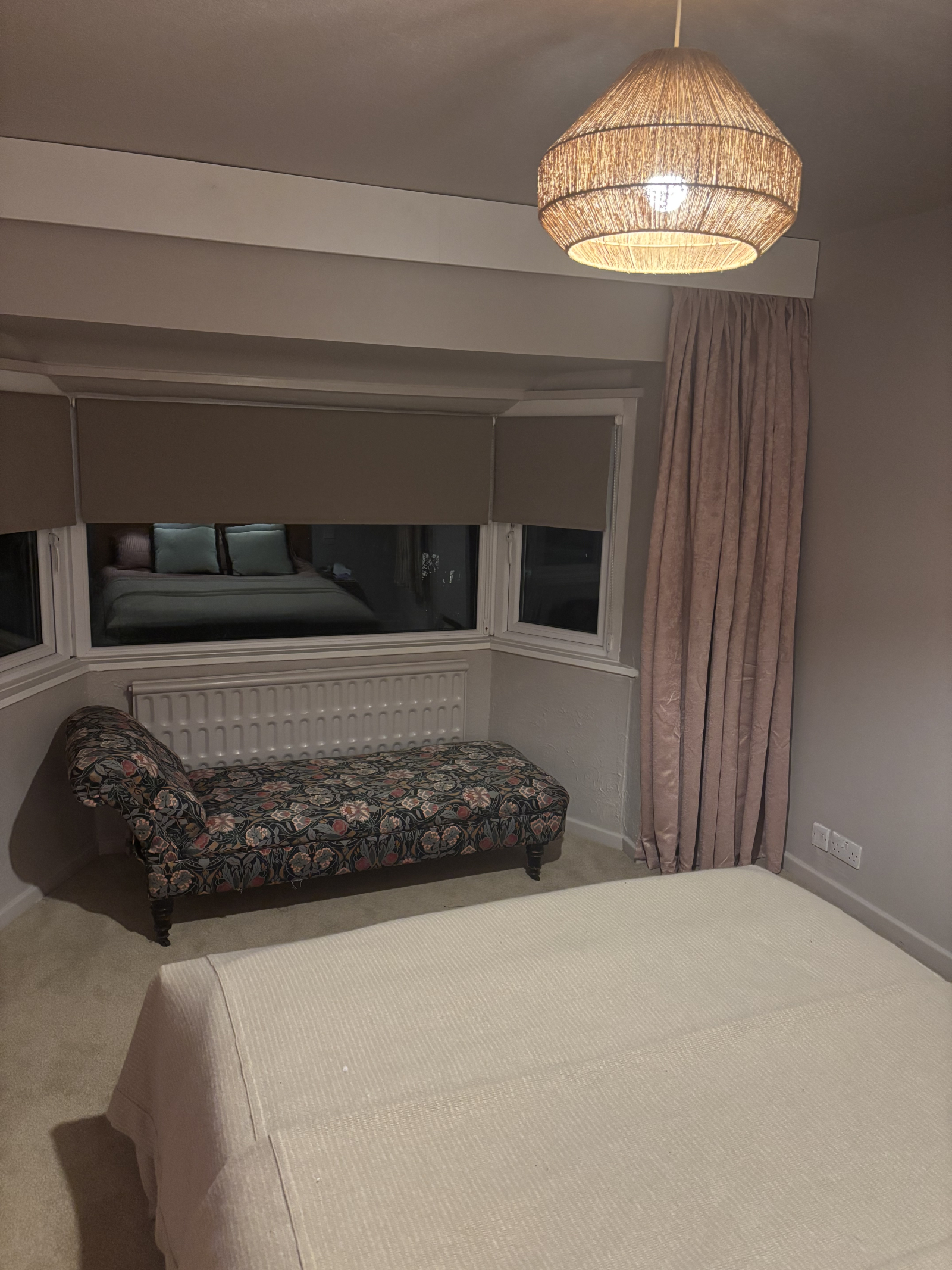 Upstairs we have 4 bedrooms, our kingsize bed with chaise in the bay window. Our second bedroom has a Japanese style single bed. The third bedroom has another single bed and a mattress stored underneath as required. The fourth bedroom also has a single bed with mattress underneath if required. We have two upstairs bathrooms with a bath and two showers. We have a downstairs loo, cloakroom and great utility area with washing machine and heat pump dryer.