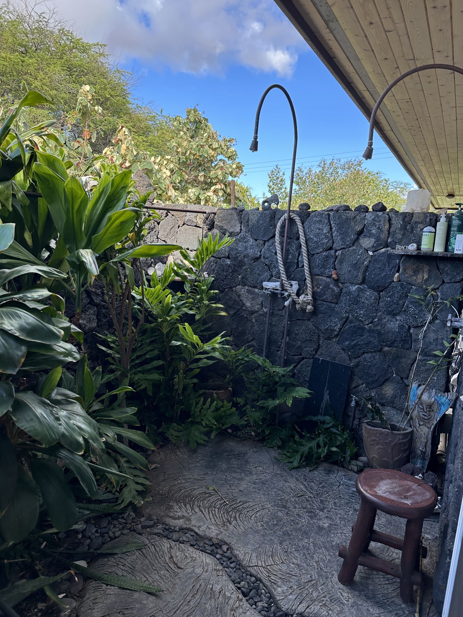 The outdoor shower was a new experience and very much enjoyed after Hawaiis warm days.