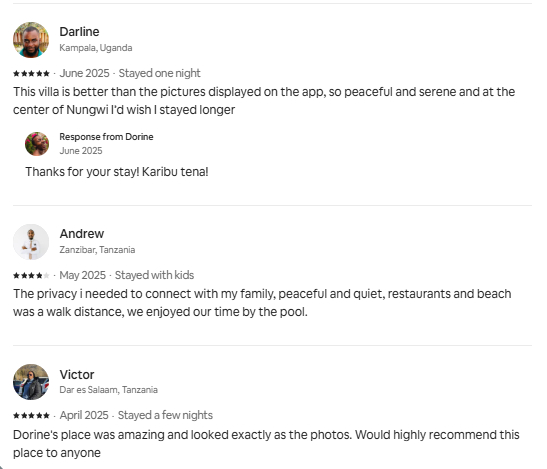A gated space - popular for honeymoons, but also families. Private 3-bedroom, (5 beds so can fit up to 10 people) en suite, in central Nungwi, Zanzibar. The villa is part of Bukoba Villas. Enjoy a private pool, spacious living areas, indoor/outdoor chilling spaces. Ideal for a tropical getaway, close to beaches, local markets, and vibrant nightlife. A serene retreat.
