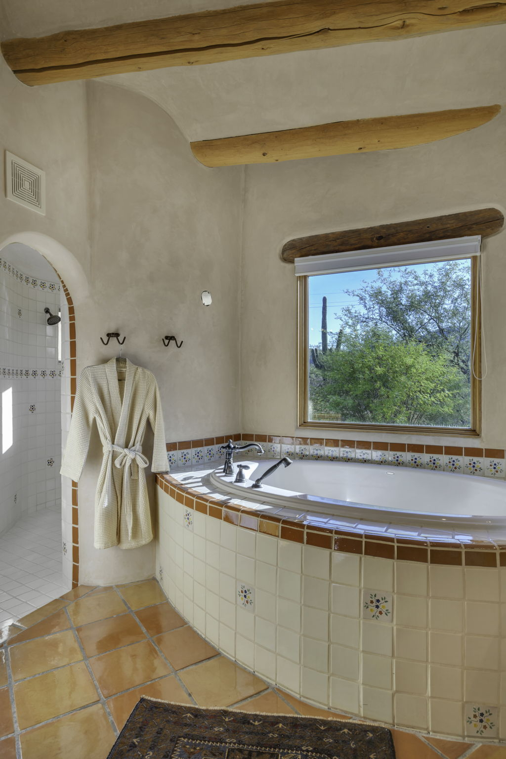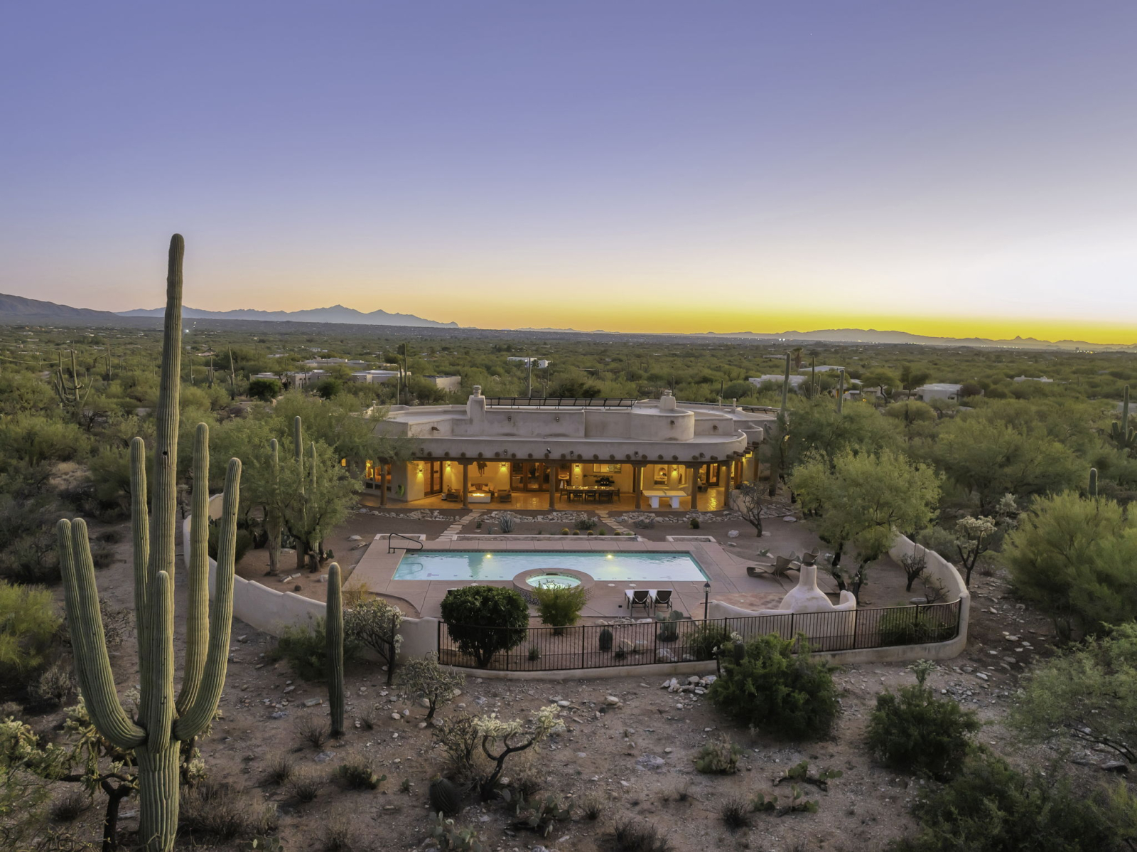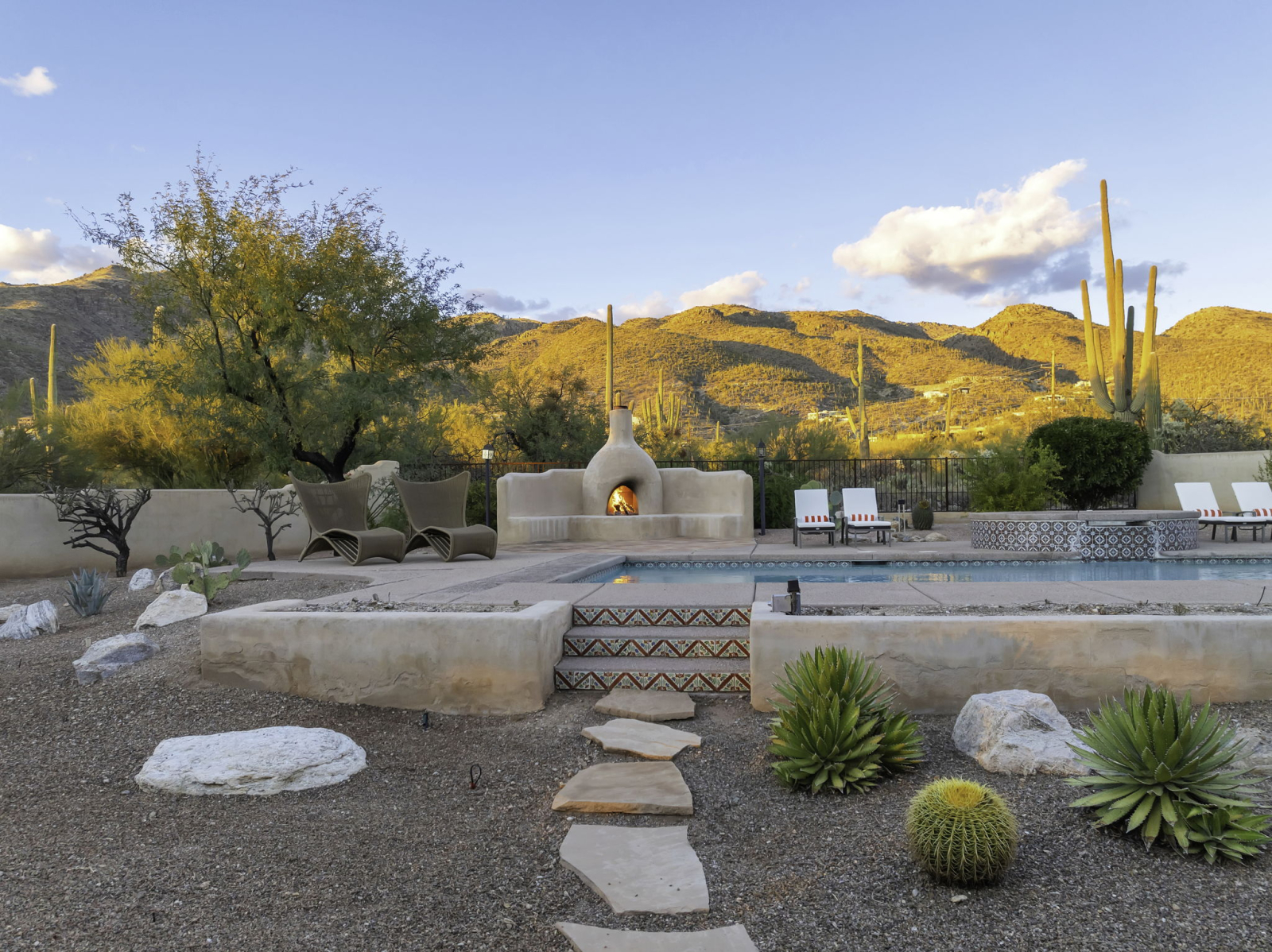 Our vacation home is situated in Northeast Tucson/Tanque Verde at the base of the Catalina Mountains, near the entrance to Coronado National Forest and Hwy to Mt Lemmon and just a few minutes from Saguaro National Park. It's a spacious Santa Fe style residence that sleeps 8 with multiple living and dining spaces as well as beautiful outdoor areas. A large lap pool and hot tub are featured in the backyard next to a wood burning fireplace and lots of patio space. Outdoor kitchen includes a grill island. The front courtyard offers sweeping Southwest views of the Rincon Mountain Range and the city of Tucson. Three of the five bedrooms include ensuite full bathrooms, and the large kitchen is equipped for gourmet cooking. Home is 10 minutes drive from local shopping and restaurants, and 35 minutes from University of Arizona and downtown Tucson.