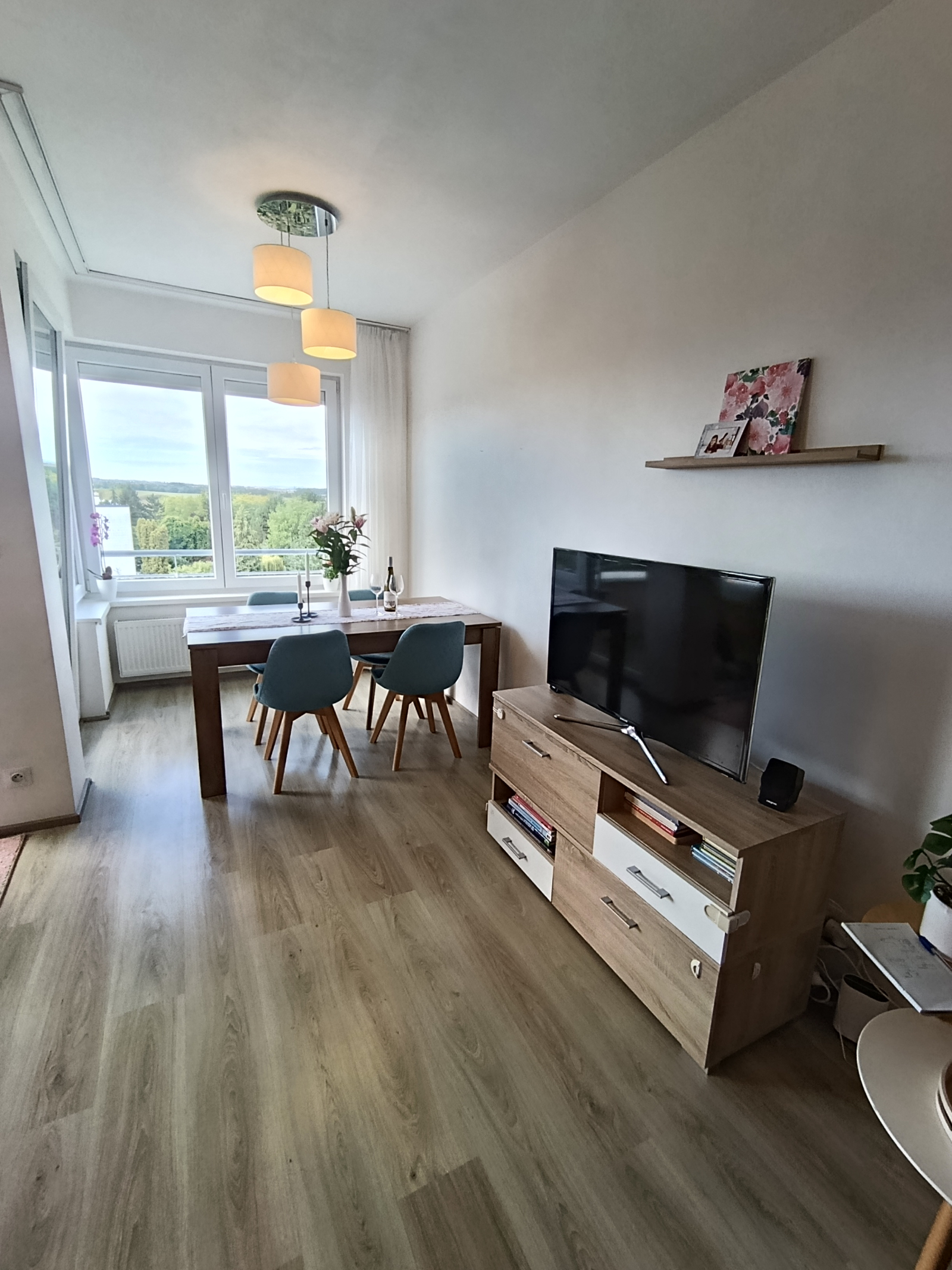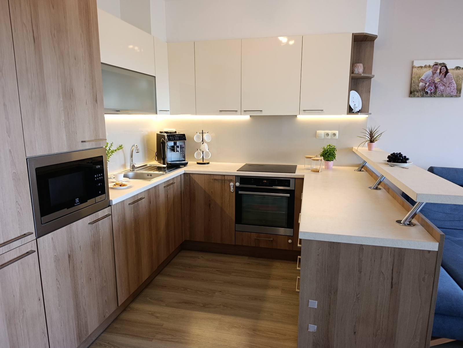 The apartment is divided into a night part and a day part. On one side there is a living room connected to a large and fully equipped kitchen including my favorite coffee machine for my daily latte and for your favorite drink, too :) There is also a balcony attached with great nature/sunset view.