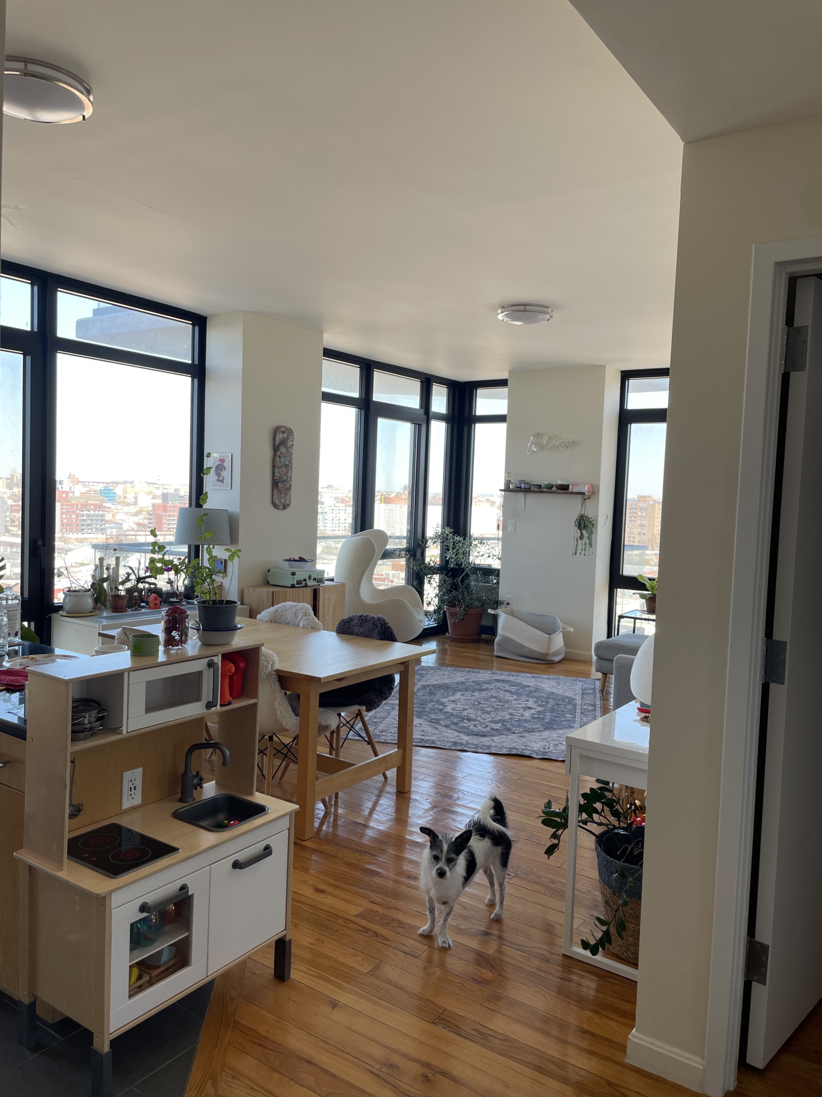 We fell in love with our apartment as soon as we saw it being built during the pandemic. It is close to the ferry, the best way to travel in my opinion, and serene bring next to the east river and parks in every direction. The apartment was new when we moved in, we were stuck at home for our first winter with a newborn and felt cozy and connected with the floor to ceiling wrap around windows. In the summer we enjoy aperitivo and digestivo on our balcony watching the sunset over Manhattan. The apartment is spacious, modern and minimal, also bring dog and child friendly.