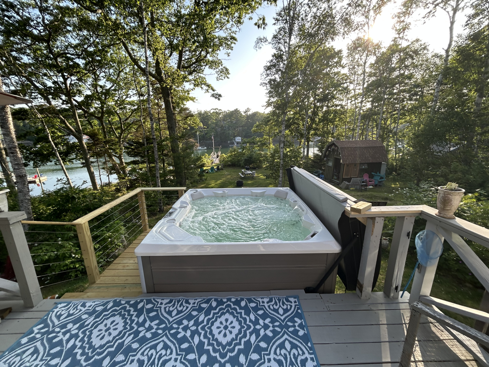 We have recently added a six person, salt, water, hot tub, which overlooks the water great for relaxation after a busy day