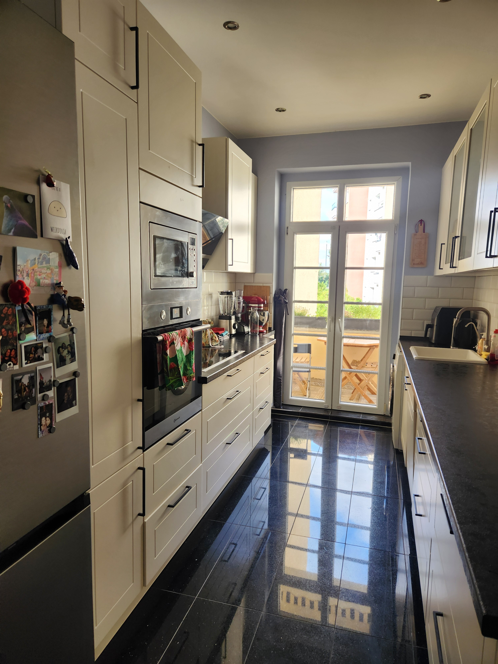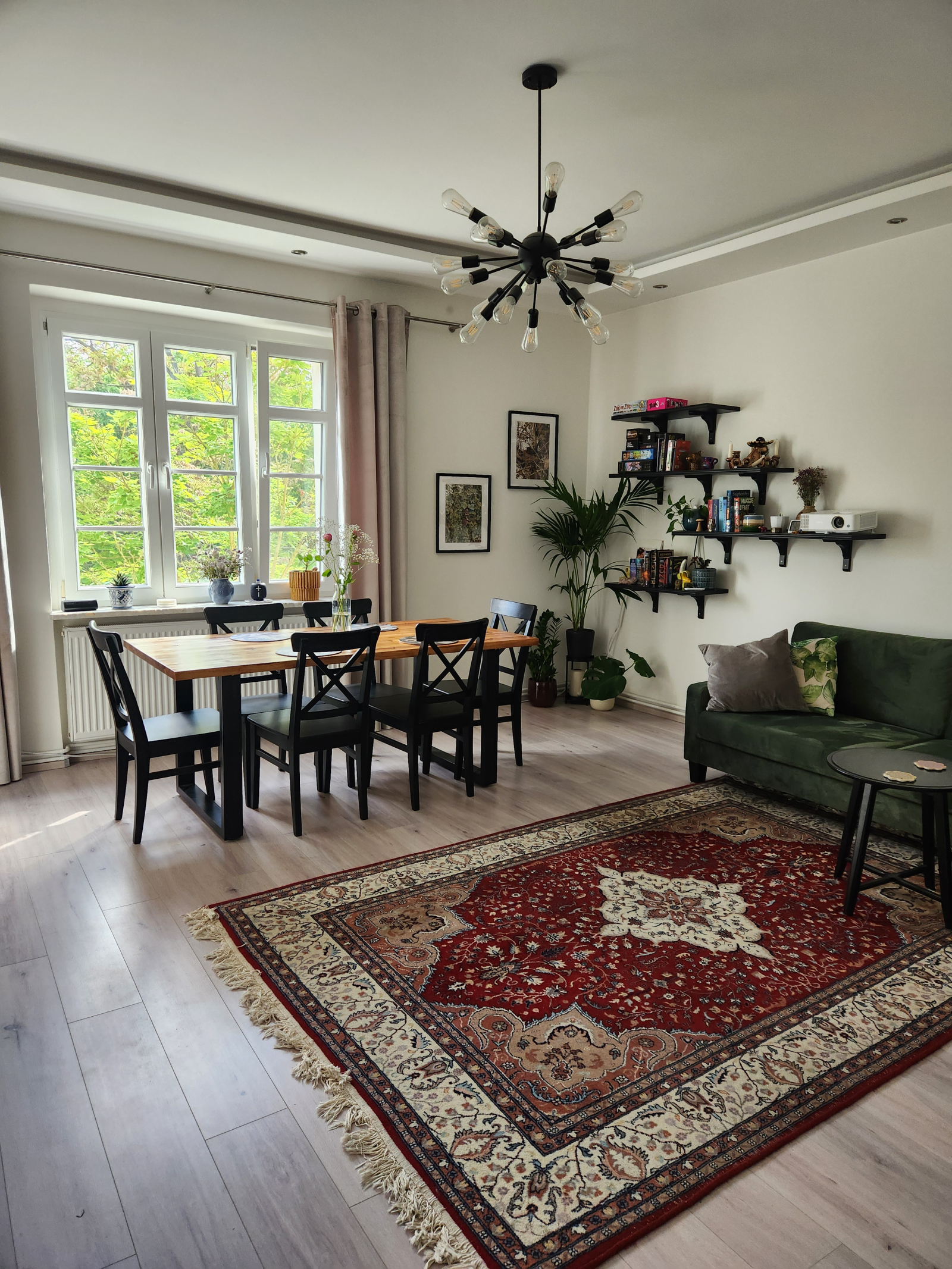 I live in a recently renovated apartment in West Berlin, in a neighbourhood next to the historical Tempelhof airport which has been converted to a park.