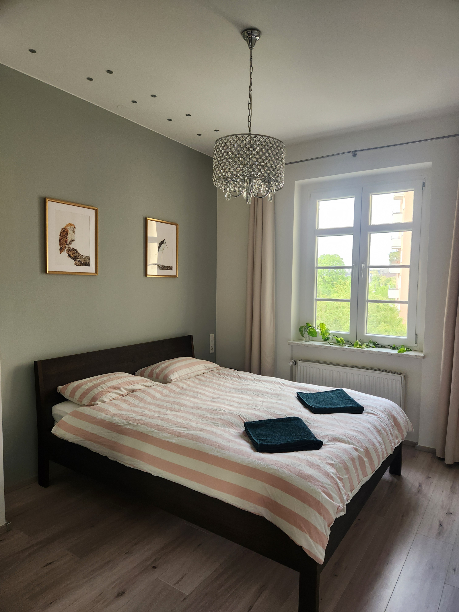 A double bed and a sofa bed are available, there is a large private communal garden for the apartment block.