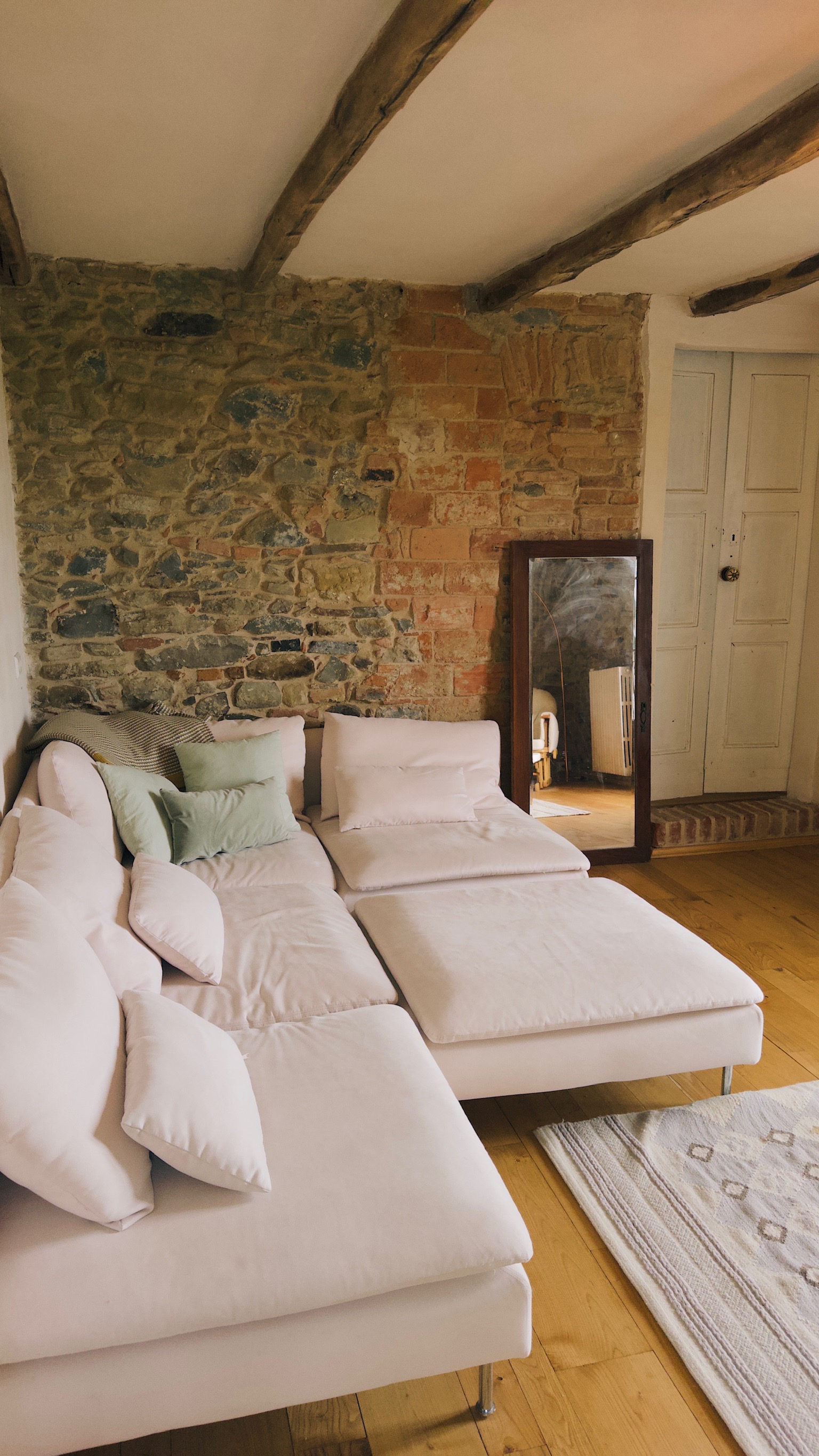 Our home is our little heart, it's so old. Even the municipality isn't sure when it was built as it was built the same time as the castle (it's part of the old town walls which were erected in its defence)! It's said Napoleon sojourned there but alas, most people who live there say the same thing so I'd be happy to say it's possibly true :) There's lots of old stone, wooden floors, fireplaces and soft linens! and a gorgeous rose bush growing on its wall. Oh and a little bench right by in the entrance! there are so many things I love about it!
