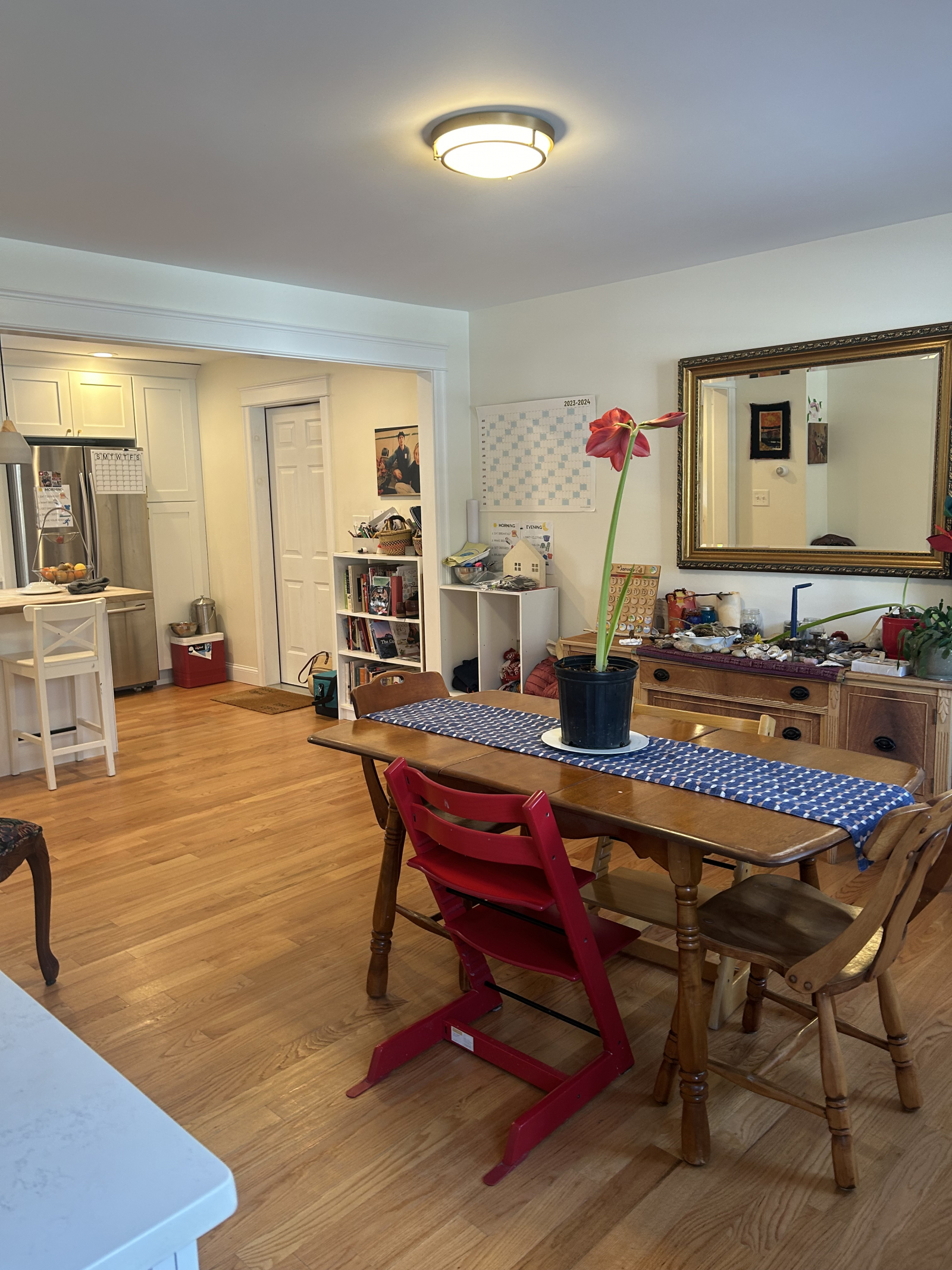 We live in a very safe & friendly residential neighborhood. Our neighborhood borders a land trust with over 6 miles of trails through the woods, farmland, blueberry fields and ponds. The farmland hosts a farmers market on Saturday mornings in the summer and fall. You can also walk to playgrounds and a sledding hill. We have bikes for adults with trailers for children, and you can bike into town in about 20 minutes (or drive in 6). We live in a small college town (Bowdoin College) and it has great restaurants, local stores and lots to do in nature!