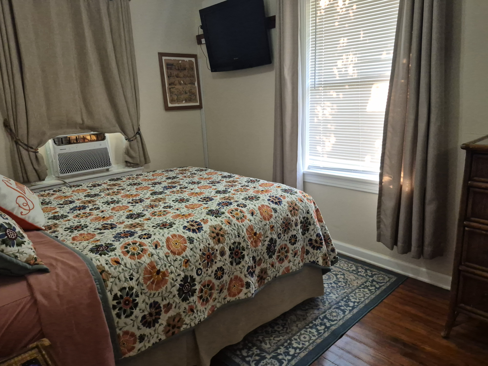 Whimsical art 2 bedroom 1 bath 800 sq ft built in the 50' s for military housing couple blocks to beautiful Bayou Chico neighborhood park & fishing dock with kayak ramp. Friendly and quiet Nearby marinas restaurants and shopping 4 miles to NAS, 3 downtown. 9 miles to Pensacola beach.