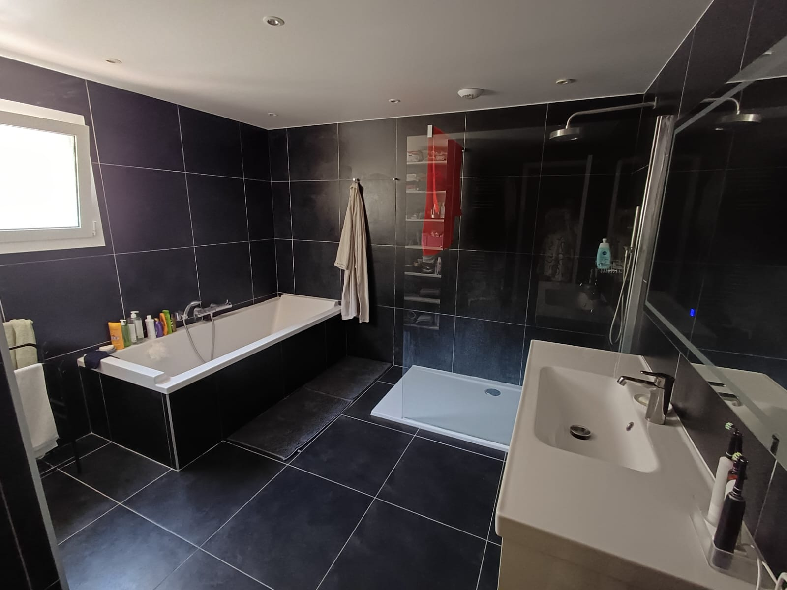 Further on, you will find a large bathroom with a large bathtub and a shower. The toilet is separate.