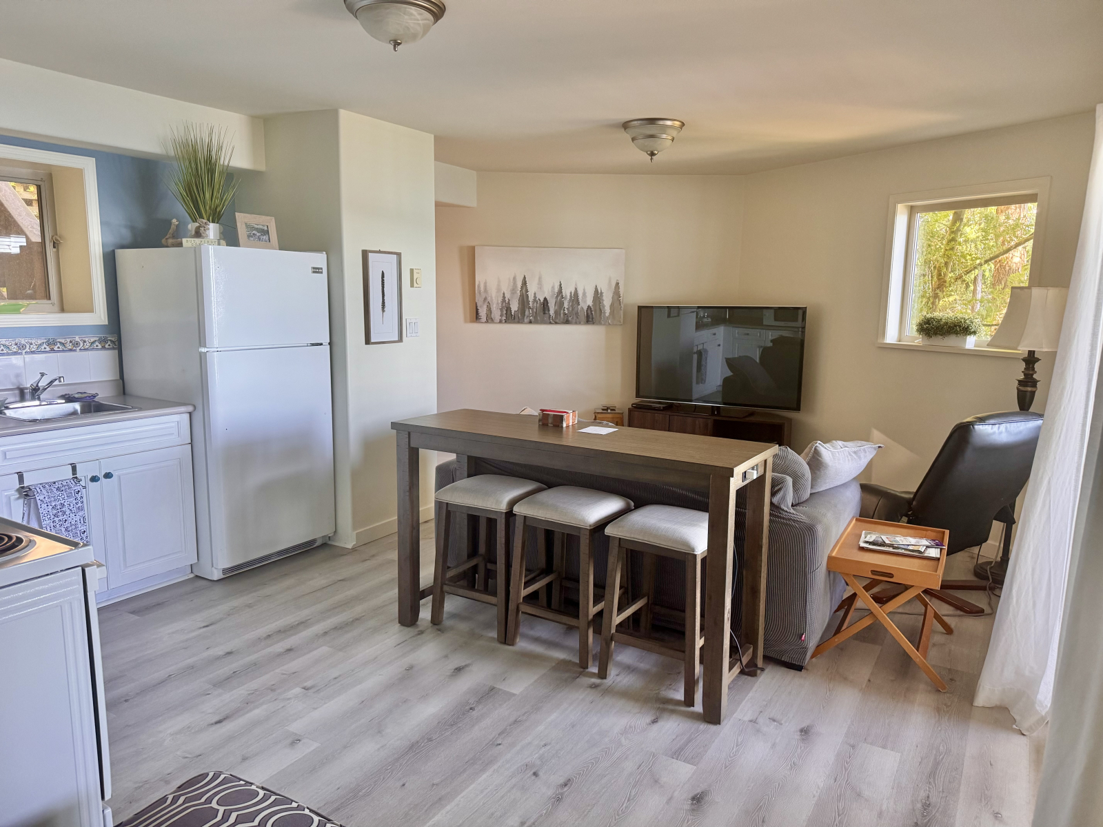 The kitchen is well equipped kitchen, the TV comes with access to Netflix and Chromecast. The eating bench has a built in recharger for your phones.