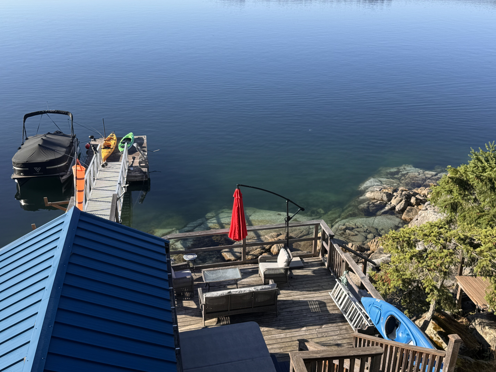 There is a steep driveway (but all cars can navigate it), and you access the apartment from the parking spot via stairs in front of our house. Reaching the dock and hot tub also involves stairs.