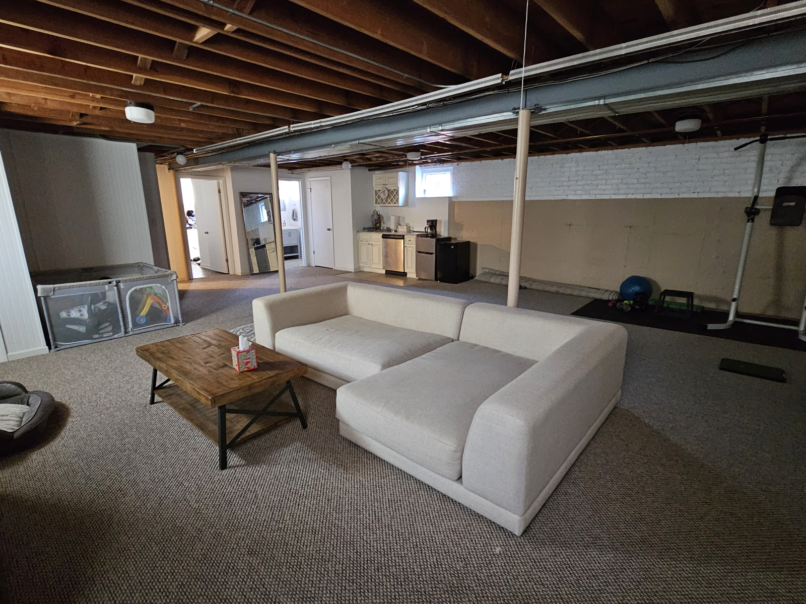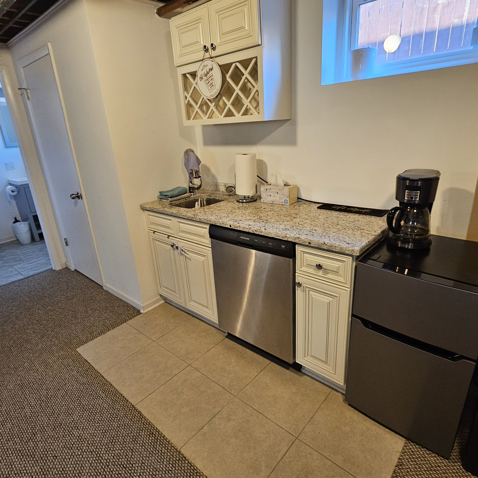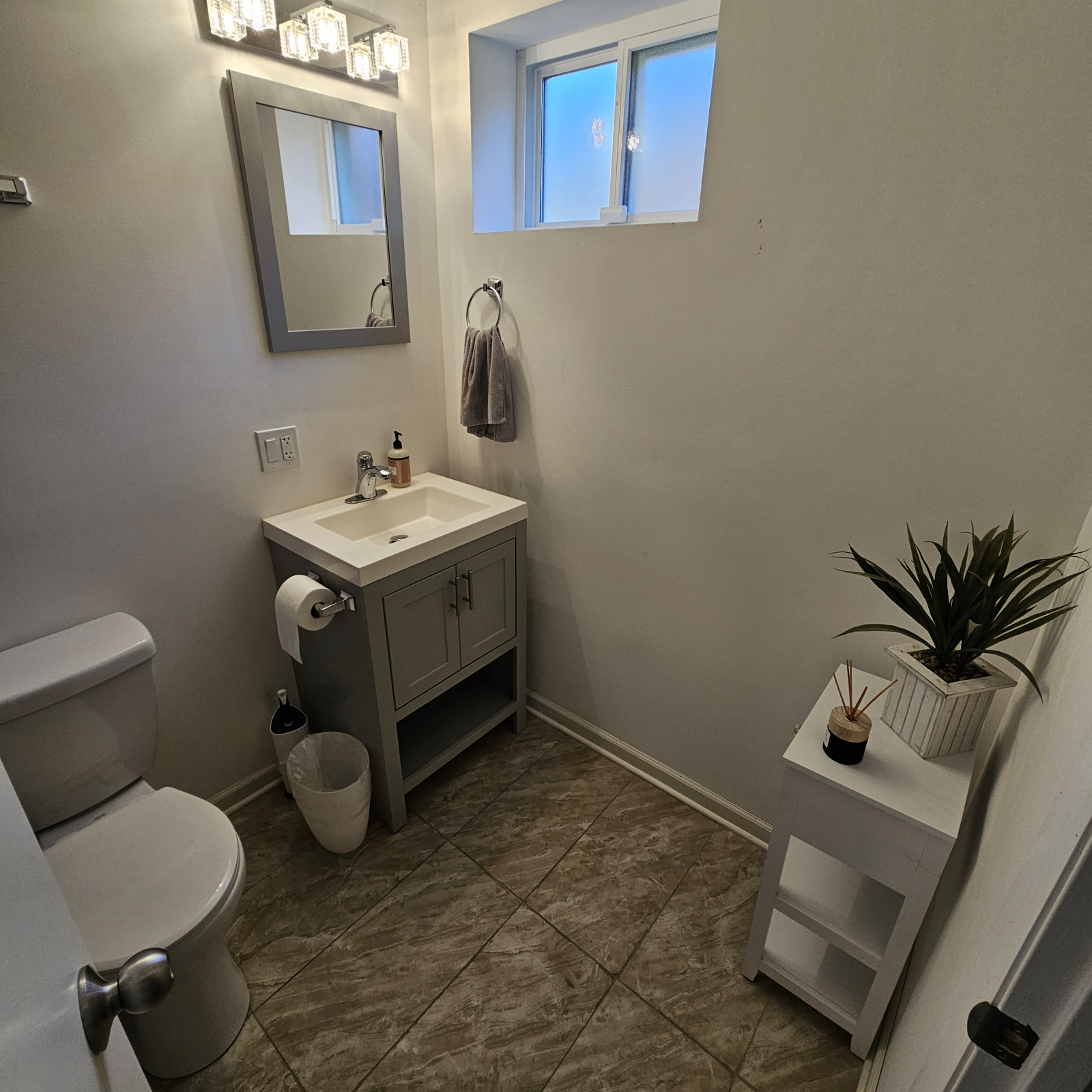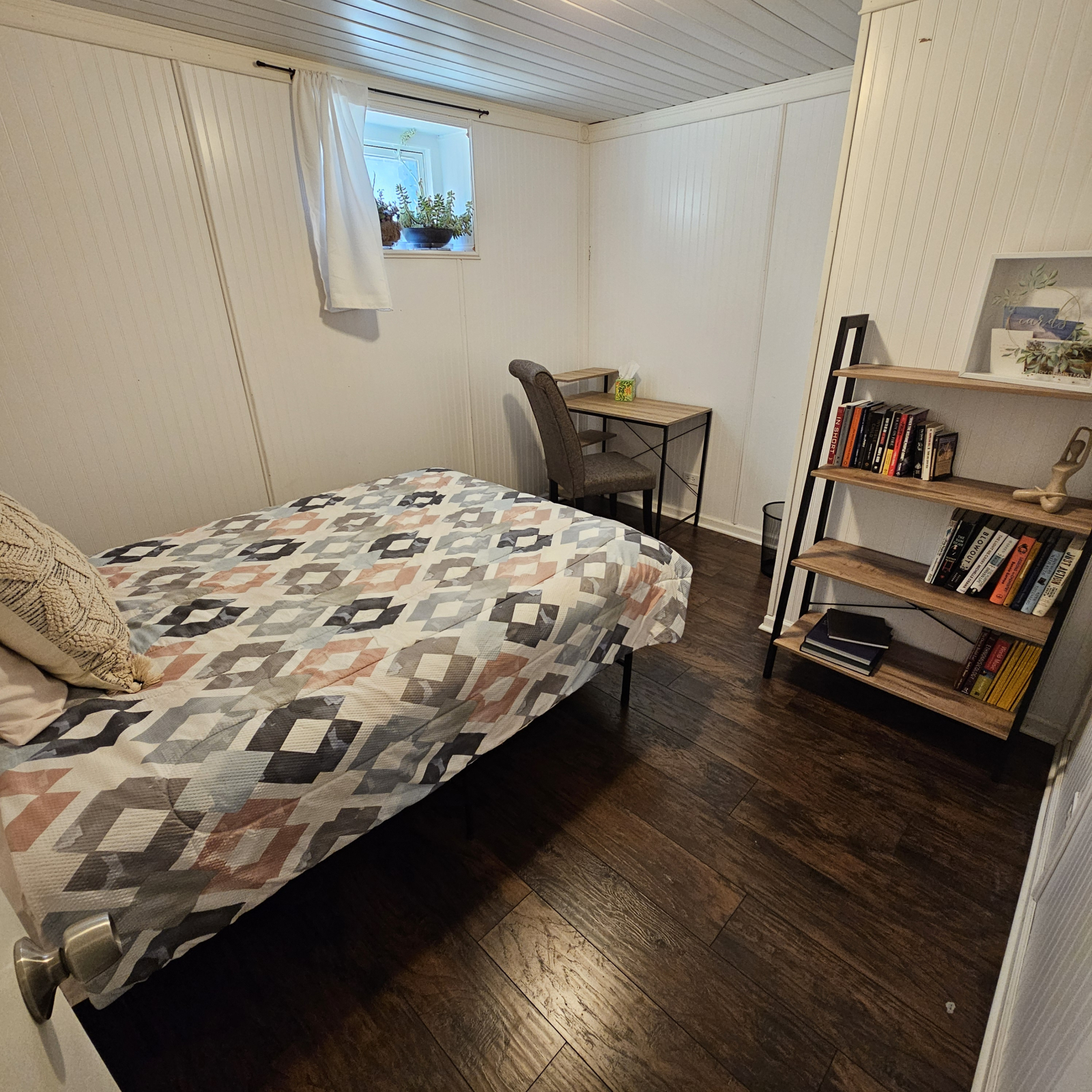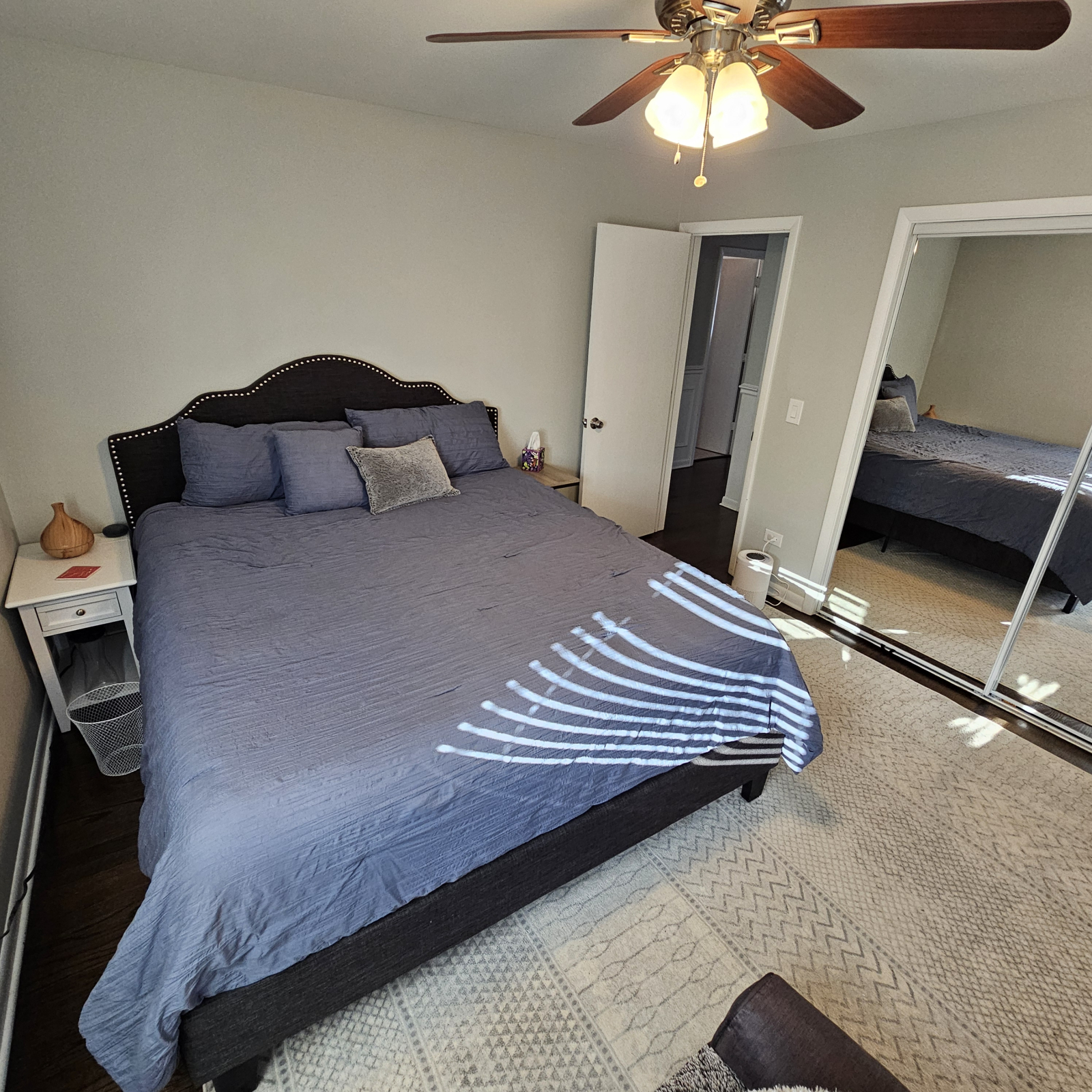 The main floor has 2BRs, shared full bathroom, dining for 6, living room and kitch. 1 BR has a Cal King bed and luggage rack and the 2nd BR has a Queen bed and luggage rack - I'm also happy to make some space in the closets if preferred. In the basement there is a small bedroom (no closet) and a full bathroom, wet bar with mini fridge and dish washer, laundry room and an open/rec area (that has some limited exercise equipment). TVs on both floors have streaming apps and cable TV, and I have a vinyl record player with a small collection of records (or request one - I love discovering new artists!), microphone set (fun for a karaoke night), and an Oculus VR head set (safest to use in the basement). The driveway and yard are fully fenced in and the back patio area has a hammock and patio set with propane fire pictured.