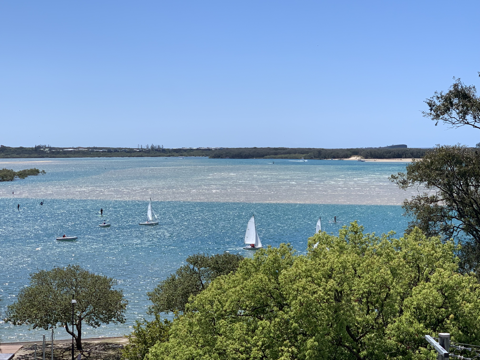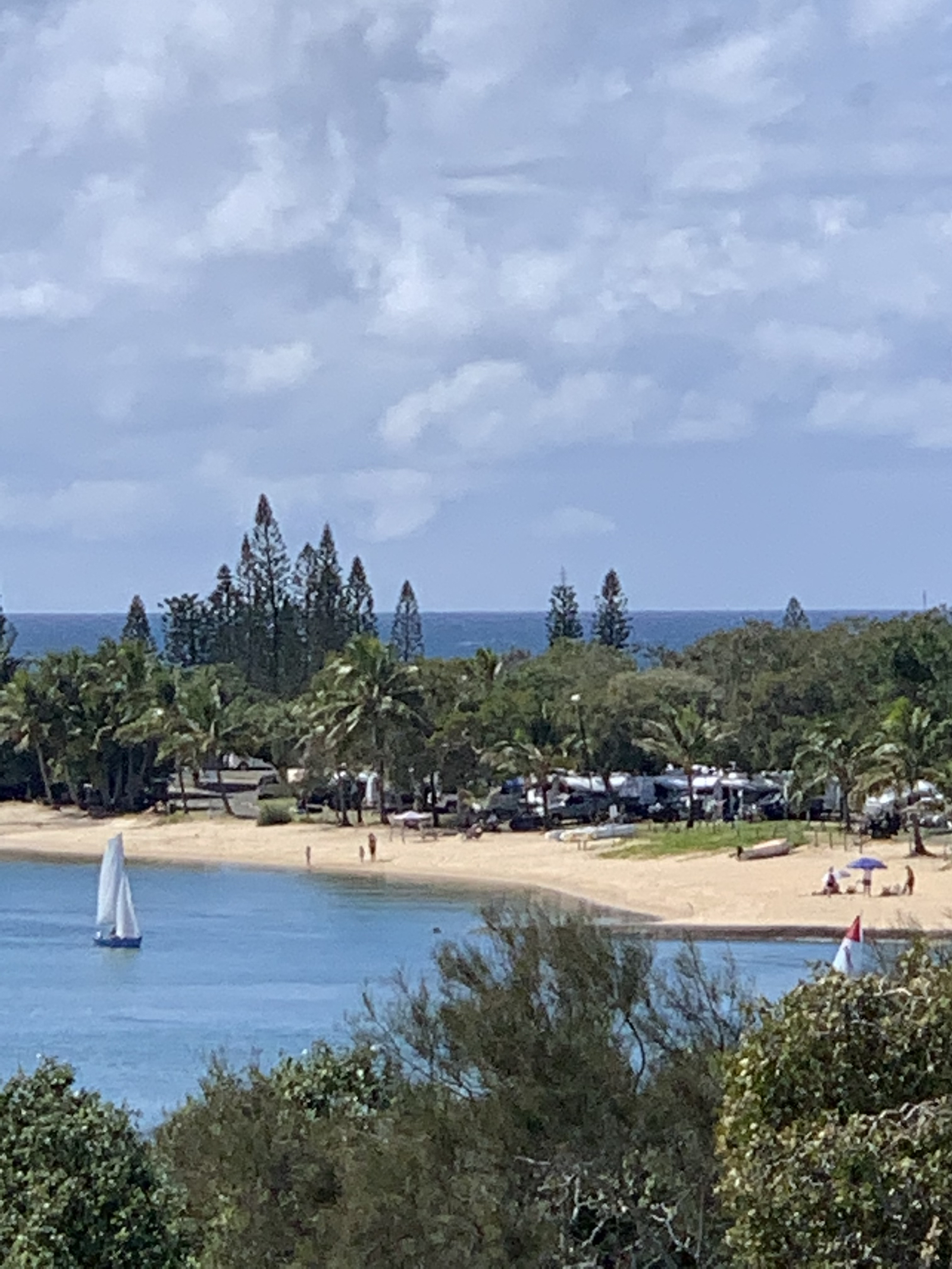 Beautiful views from our 5 th floor apartment looking down on park on verge of Maroochy river. The apartment is very sheltered against wind and the balcony can be used almost always.