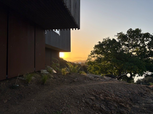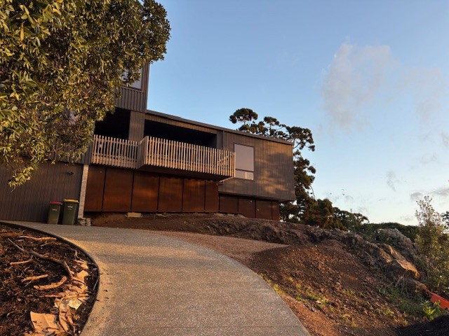 The house is on a steep site off the street, and is over 3 levels. Drive up to the internal garage or parking. 2 bedrooms on mid level and the main bedroom is on the top floor, so lots of stairs.