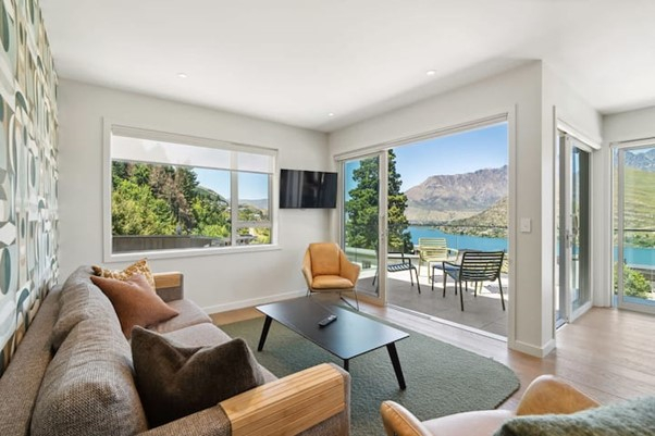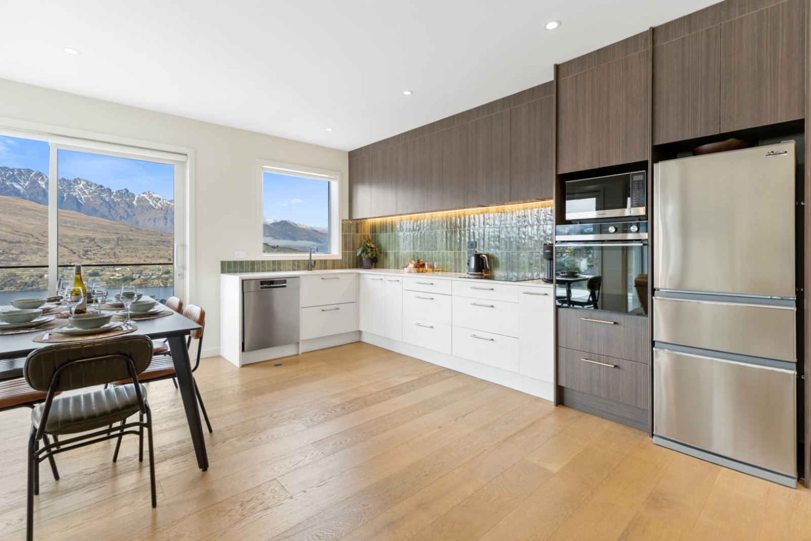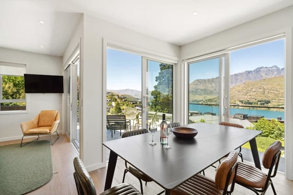 Enjoy stunning views of Lake Wakatipu and The Remarkables mountains through large windows, offering breathtaking sights at every turn. Situated on a quiet street, this property offers both privacy and comfort, ensuring an unforgettable getaway.