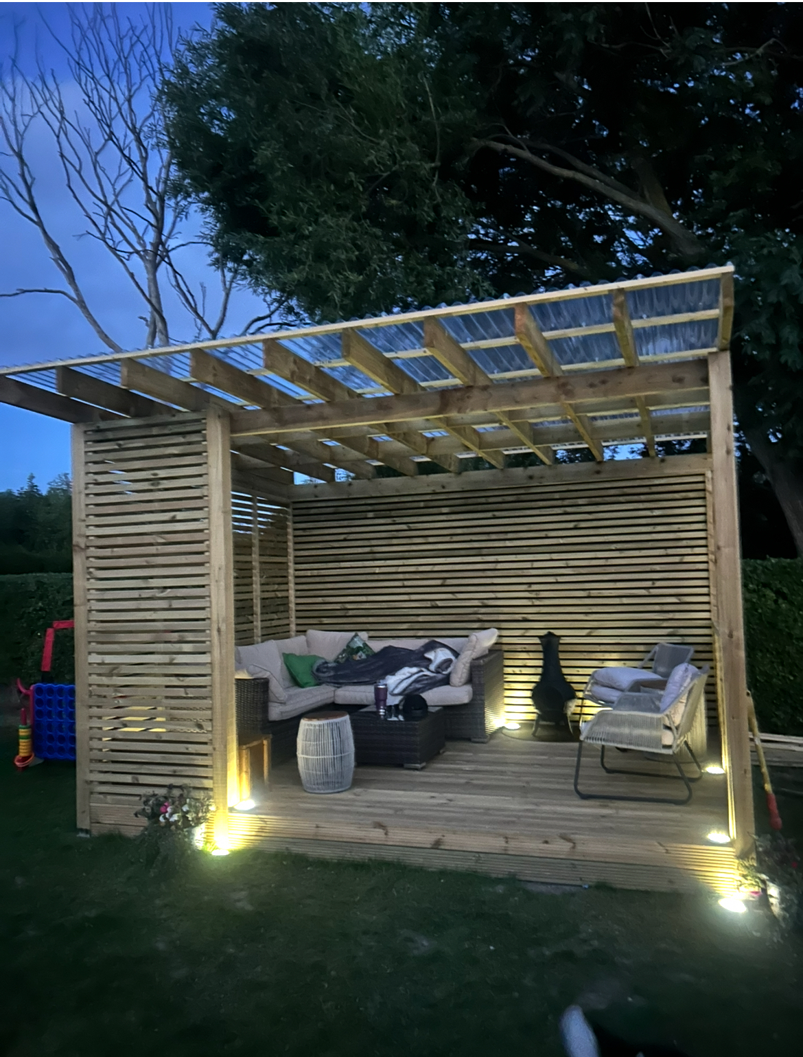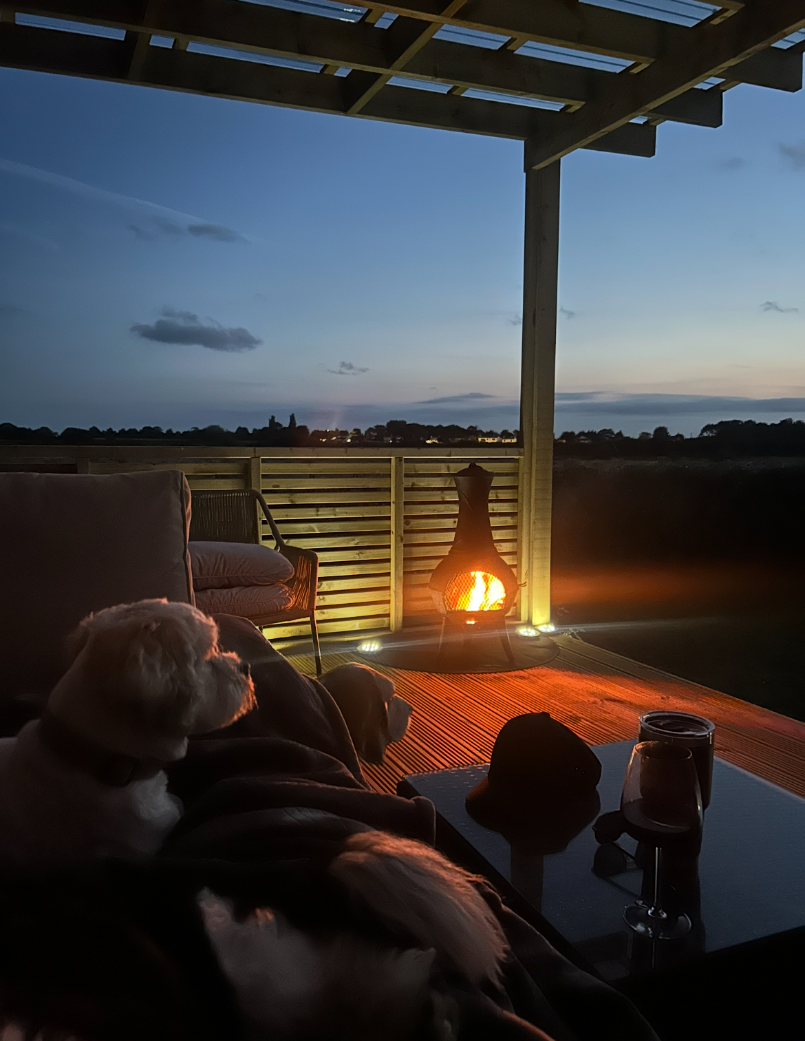 • Large covered pergola with soft furnishings & a fire pit — perfect for cosy evenings and watching beautiful countryside sunsets