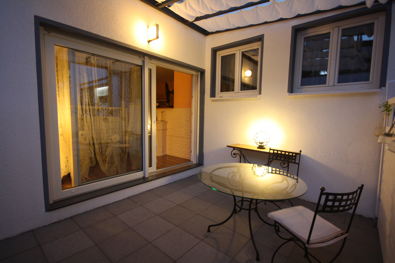 Lovely ground floor apartment, fully equipped, large shower at floor level, washer and dryer, beautiful terrace under a glass roof, great for eating outdoor most of the year
