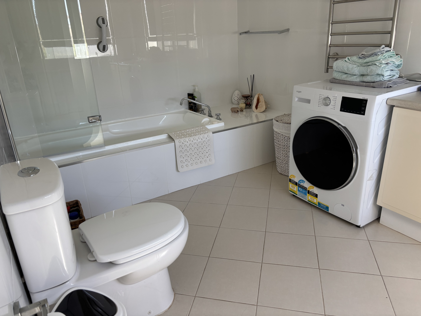 Best bed! Lovely comfy sleep. Large ensuite with bath and shower. And washing machine! Own TV Room with mini kitchen. Balcony with Weber BBQ. Internet access. Netflix.