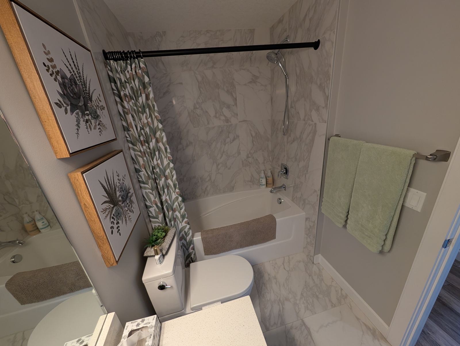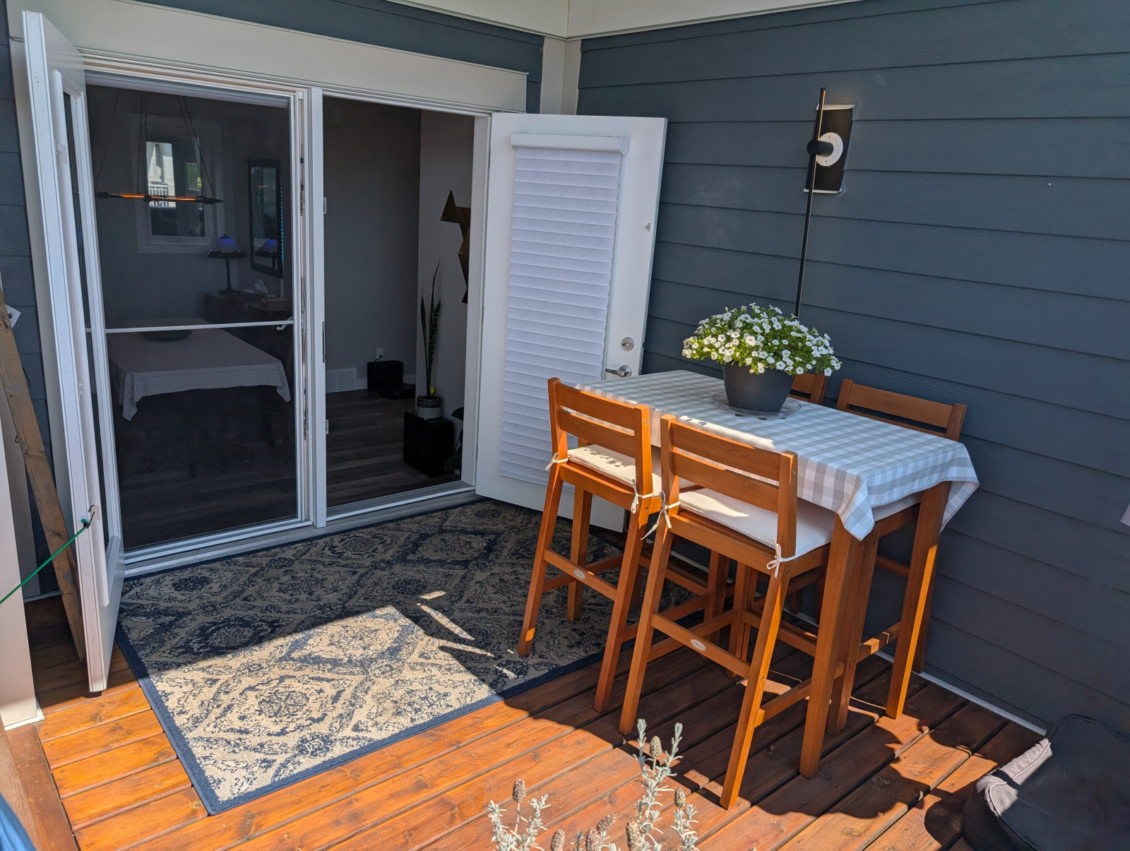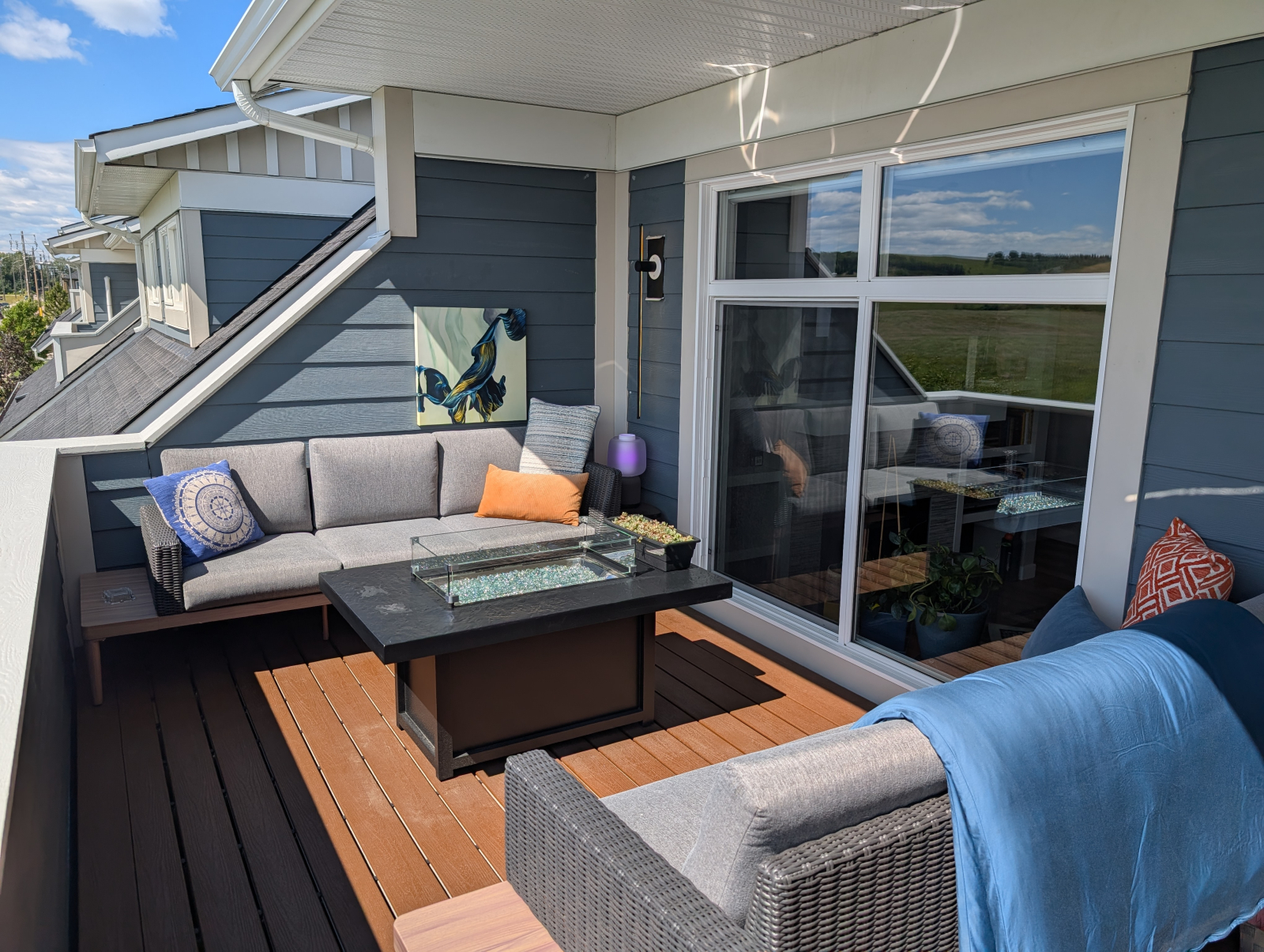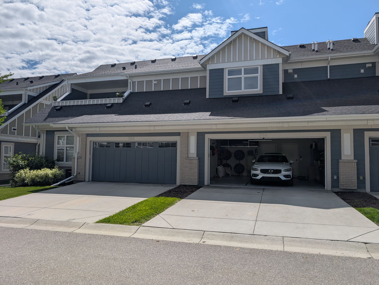 The double car garage and main entry are all located on the gound level. Once upstairs, the bedrooms, common areas, office, and two rooftop patios create 1800 sqft of space. One patio faces north and one south, so no matter where the weather is coming from, you can be outside. Both patios have either a fire table or fire ring and bbq.