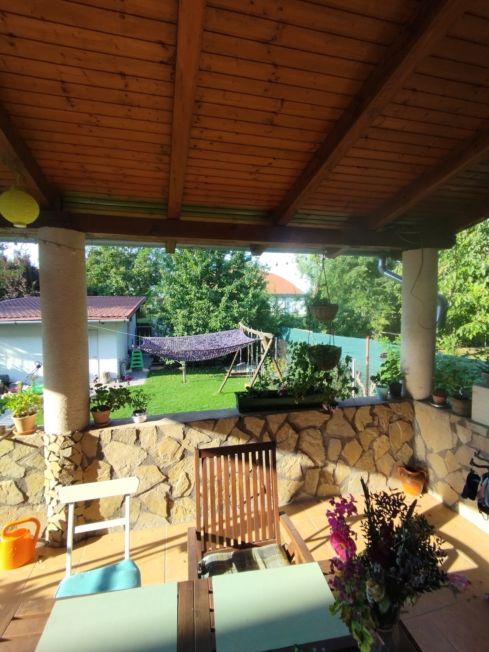 Our home is localised just next to a small park with a swimming pool and lot of birds. We have a garden ( with veggies and fruits) and a covered poarch where you can have relax, eating or playing with the kids. The house has a living room with the kitchen downstairs and the rooms upstairs (four rooms on two different floors). There are two bathrooms, one is downstairs with bath , shower, and toalet, the other is upstairs with a shower and toilet. The train station is close, about 10-12 min walk. The center of Budapest is 20 min by train. We also can provide you with bikes (two for adults and two for kids). There is a nice bike path along the Danube into Budapest or all the way to the Slovak border. During hot summer you can go eithet to the beach of the Danube or there is an aquaworld with slides in the town. It is also possible to rent kayak and paddle in the river. There is tiny ferry to Szentendre island, with beautiful and calm nature, and Szigetcsúcs-sandy beach on its peak( you also can paddle there). If you like excitement or prefer peace and quiet and the gentle embrace of nature, you can achieve it all from here.