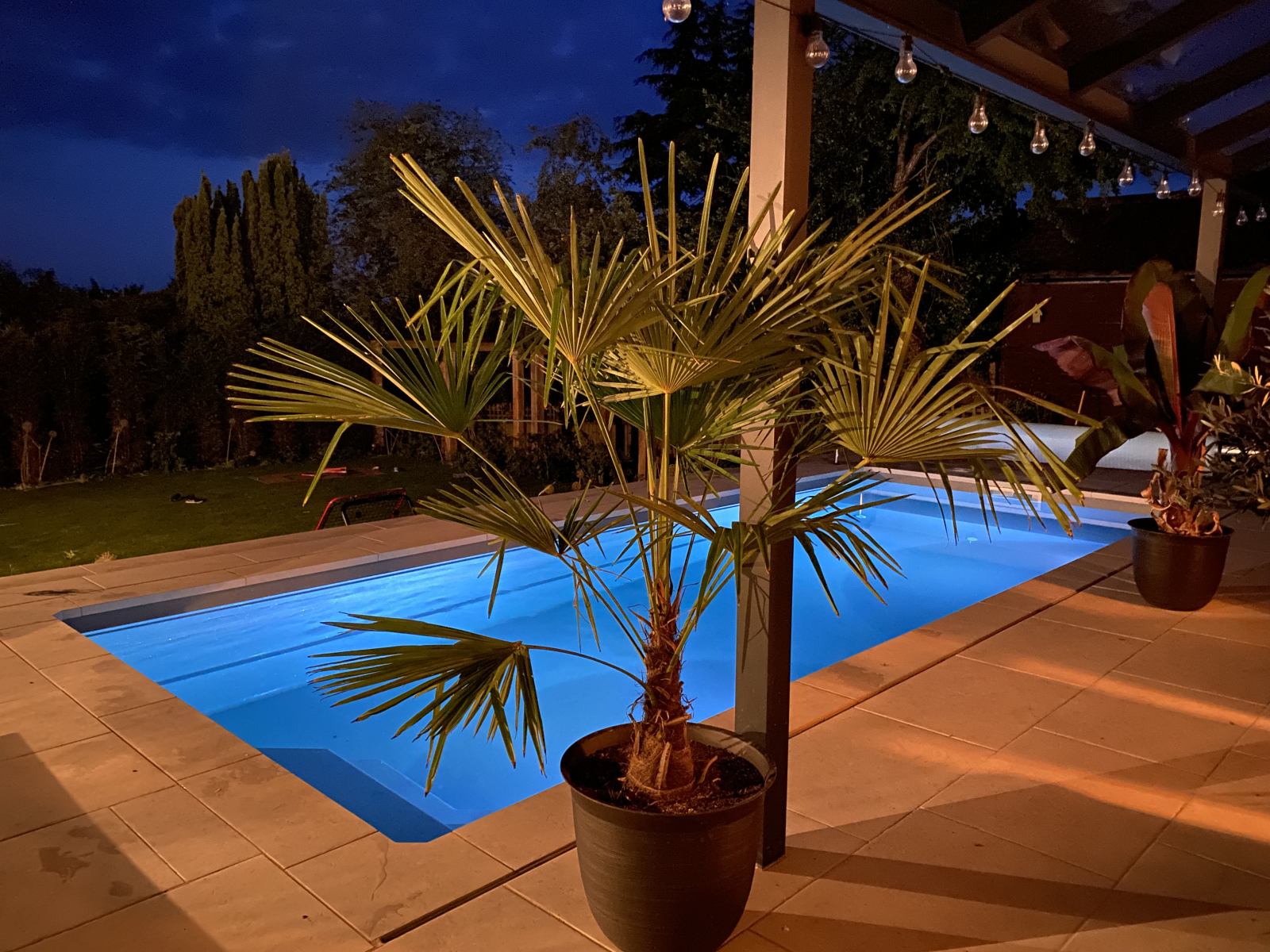 Outdoors, we have a 10m x 4m heated swimming pool which uses a UV filter, negating the need for chlorine (lovely water). The pool is not secured with a fence or anything, therefore a strict eye needs to be kept on small children outside.