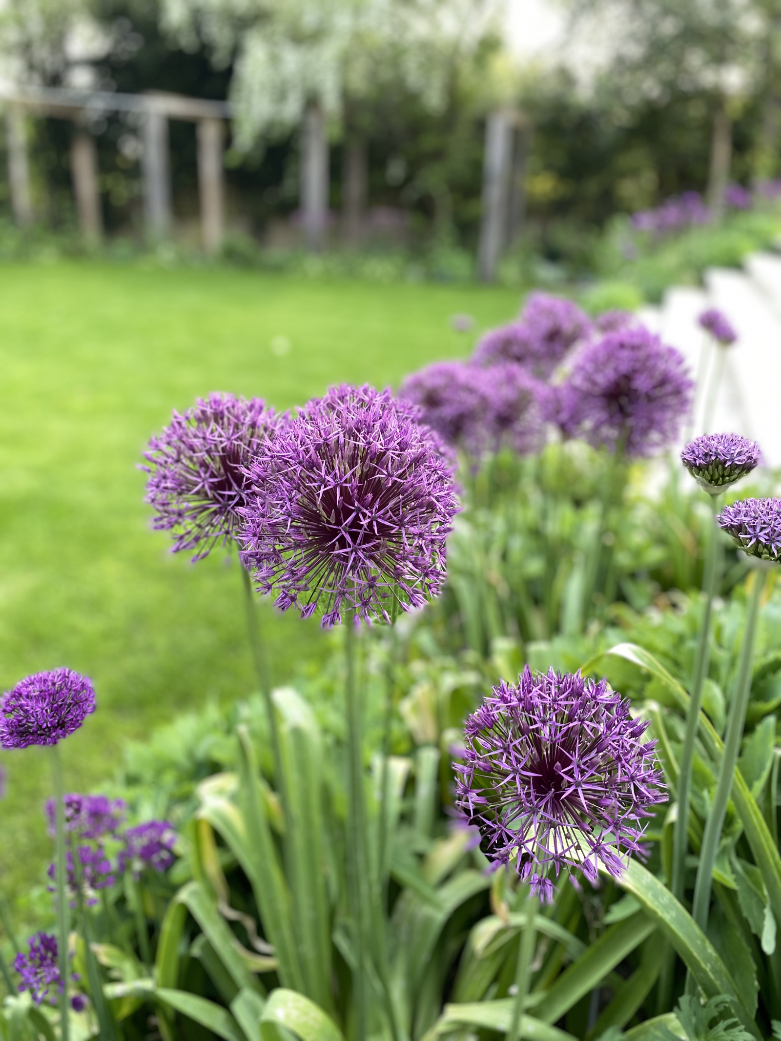 A nicely mowed lawn is alongside the pool, with a 'wildlife garden and koi pond beyond the yew hedge, at the furtherest end of the garden.