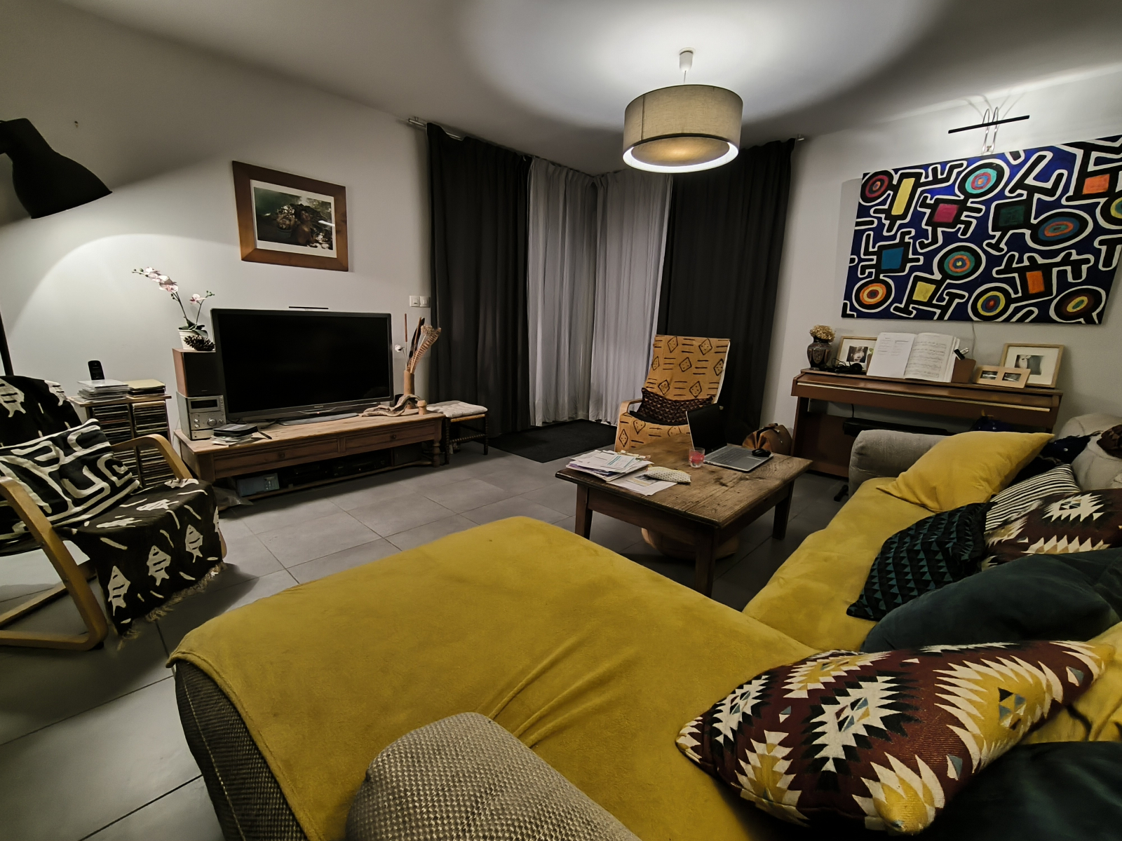 Sandrine, me, and Isidore (my son) live with Caillou (our cat).