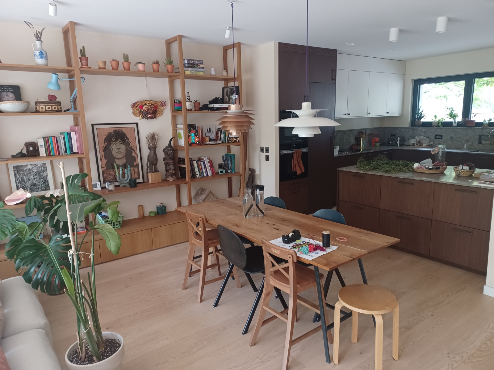 Spacious family home fulfilled with light in a quiet neighborhood . We love to hear the birds chirping in the garden.