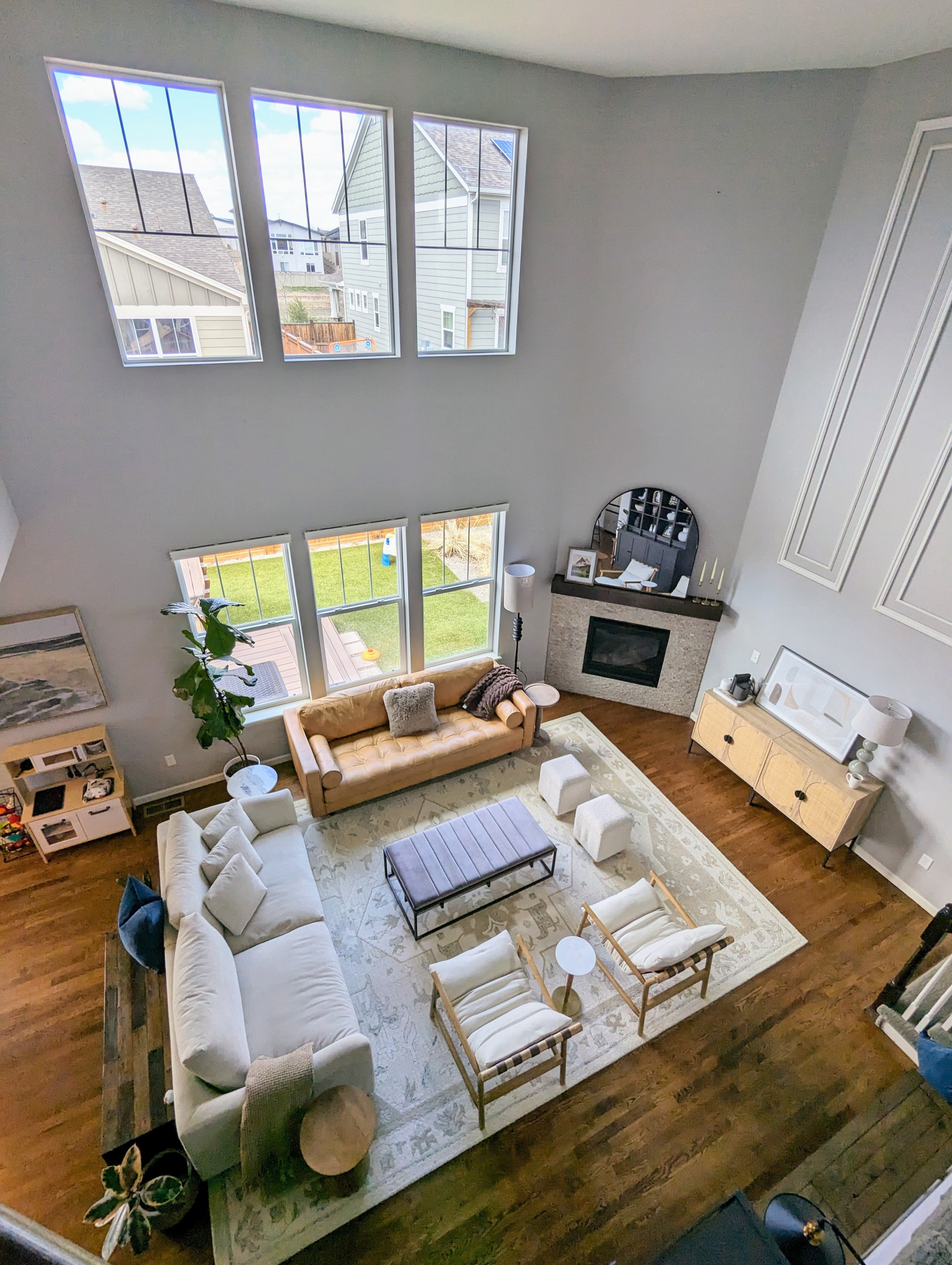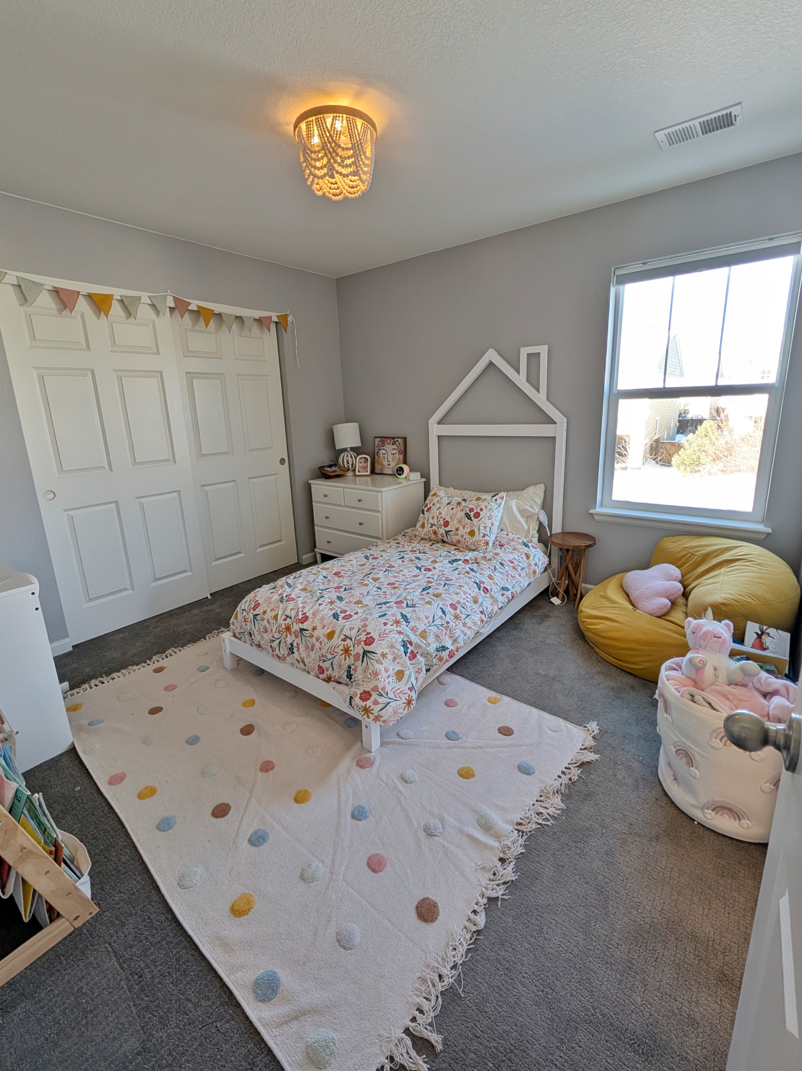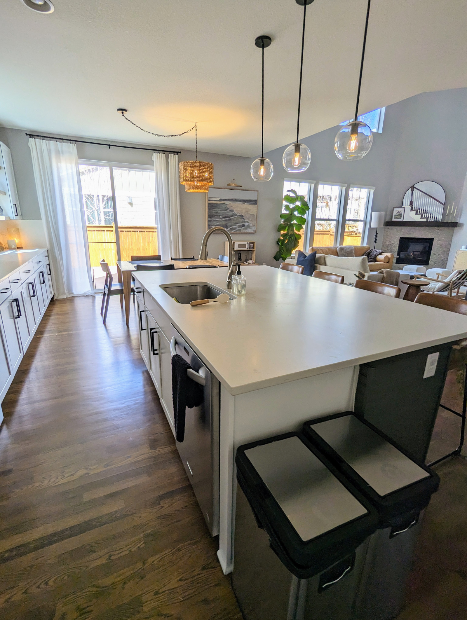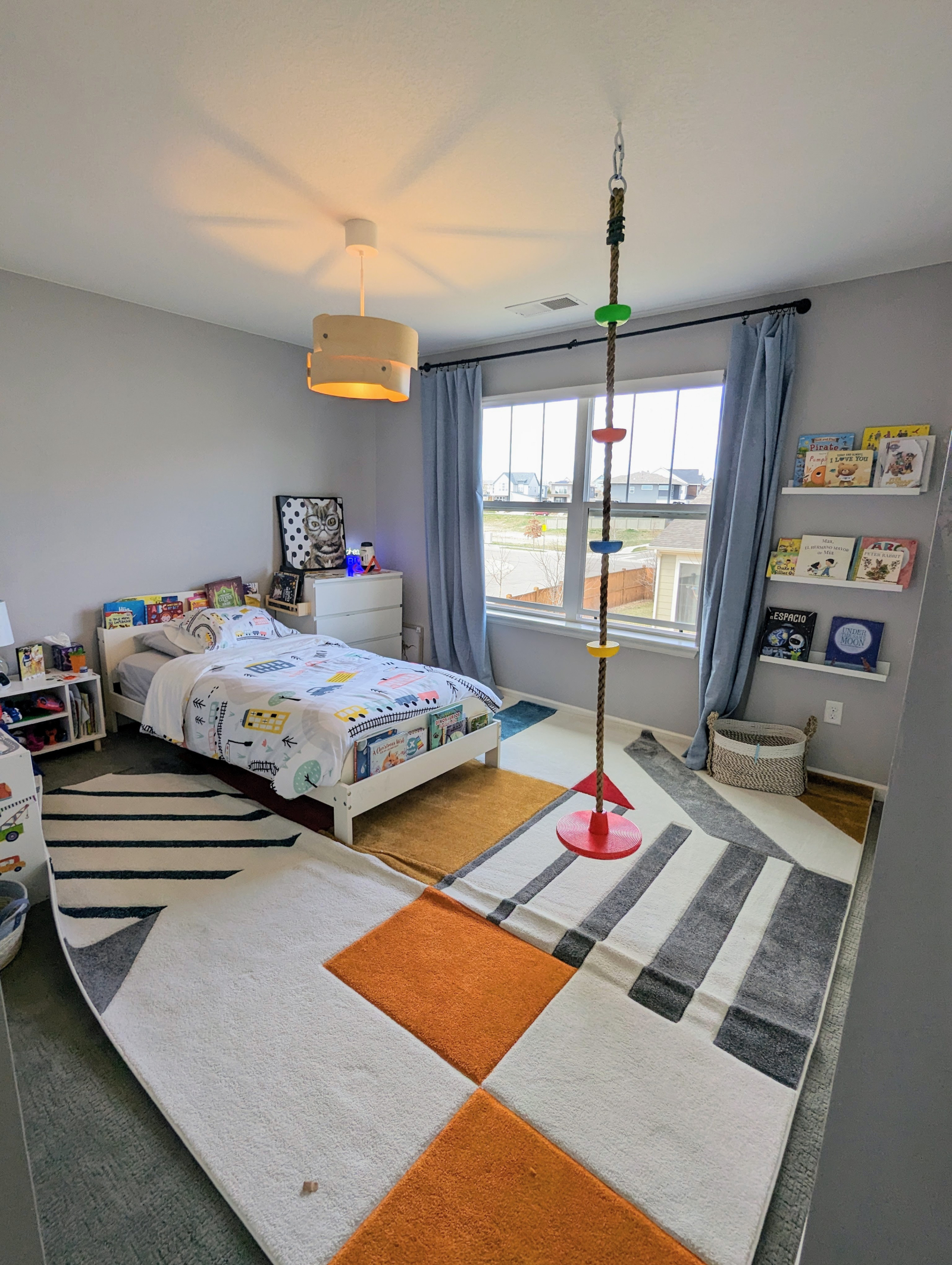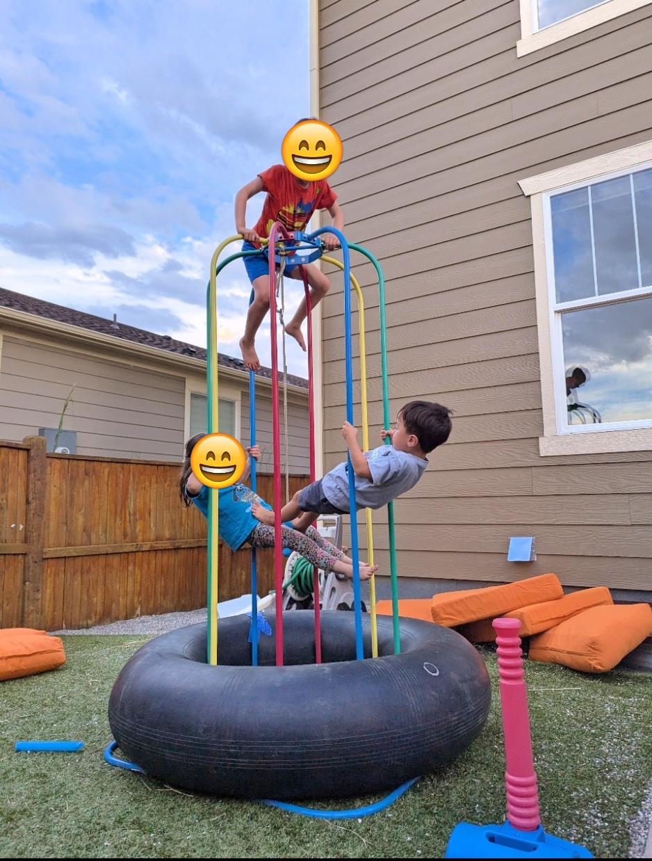 Our home features three levels of thoughtfully designed living space. The main floor boasts a high-ceiling living area with a cozy fireplace, a bright and spacious kitchen complete with a kitchen island, and direct access to a fun-filled basement. This lower level is an entertainment haven, offering a workout space, an indoor play area with a climbing wall and hanging structures for kids, and a comfy TV/recreation area. Bedrooms are warmly decorated, offering tranquil retreats after a day of adventure. Outside, our landscaped backyard includes a deck with a dining table, a grill for barbecues, another fireplace for evening relaxation, and a play structure for the kids, making it perfect for family gatherings.